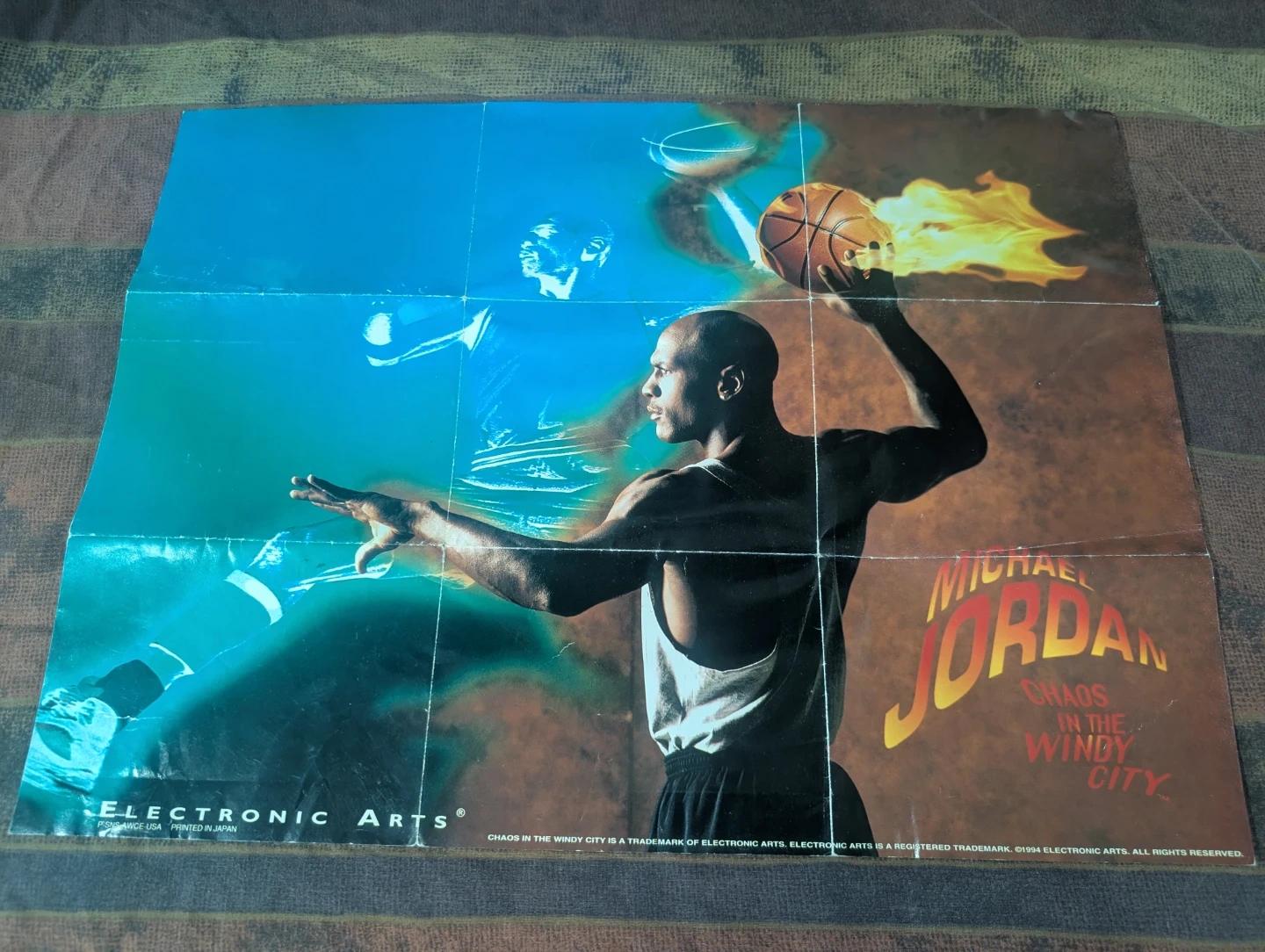 60Selling a vintage Michael Jordan poster from Electronic Arts. It features a cool design with Jordan in action. A great piece for any basketball fan or collector! Came with the SNES game Michael Jordan Chaos in the Windy City.