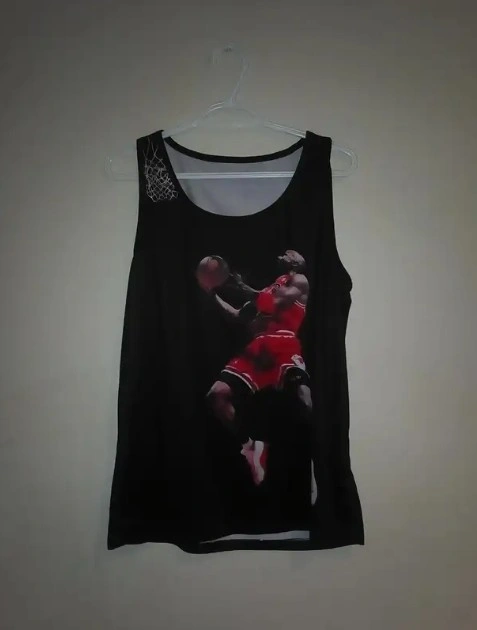 60Selling a Michael Jordan tank top! It's in great condition and features a print of MJ in action. Perfect for basketball fans or anyone who loves a sporty look