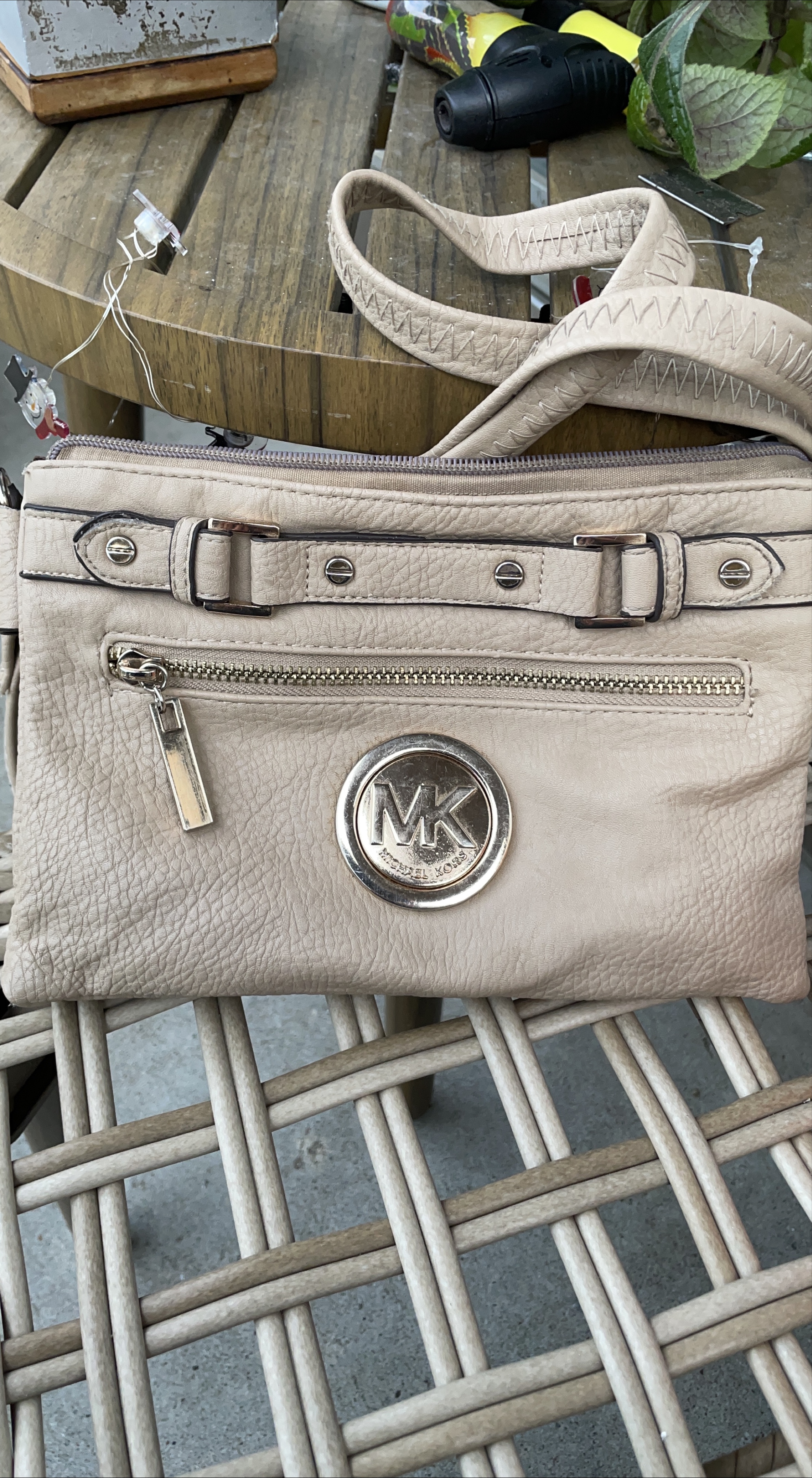 Selling a Michael Kors crossbody bag in a lovely beige colour! It's in good condition and has a convenient size for everyday use. The interior has a few compartments to keep your belongings organized.