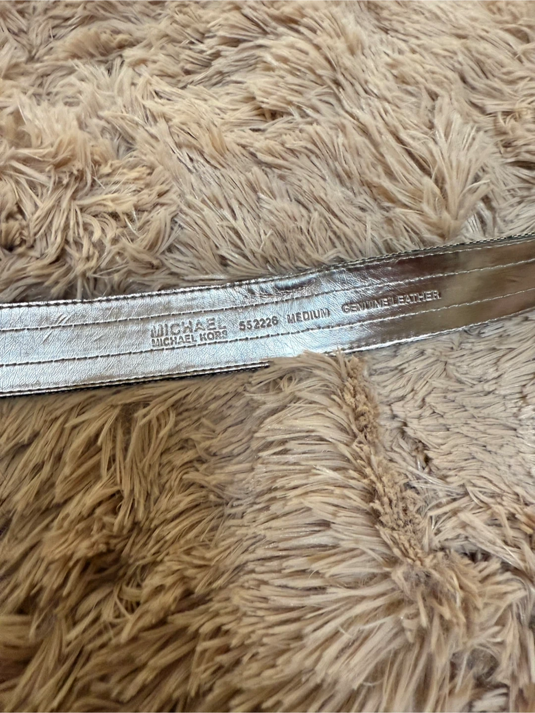 97Selling a Michael Kors belt in size medium. It's in good condition and has a stylish design with the MK logo. It comes with silver finish.