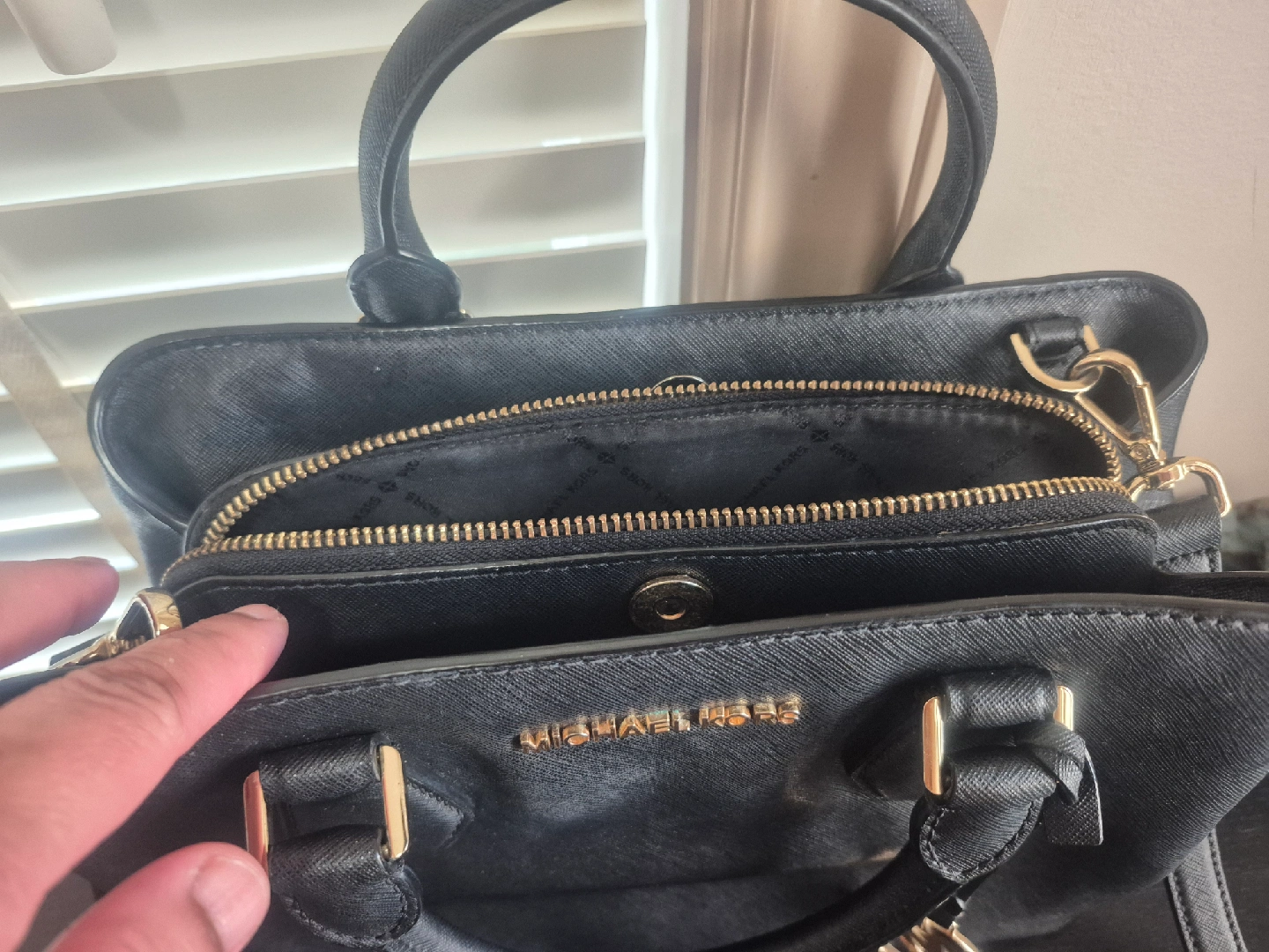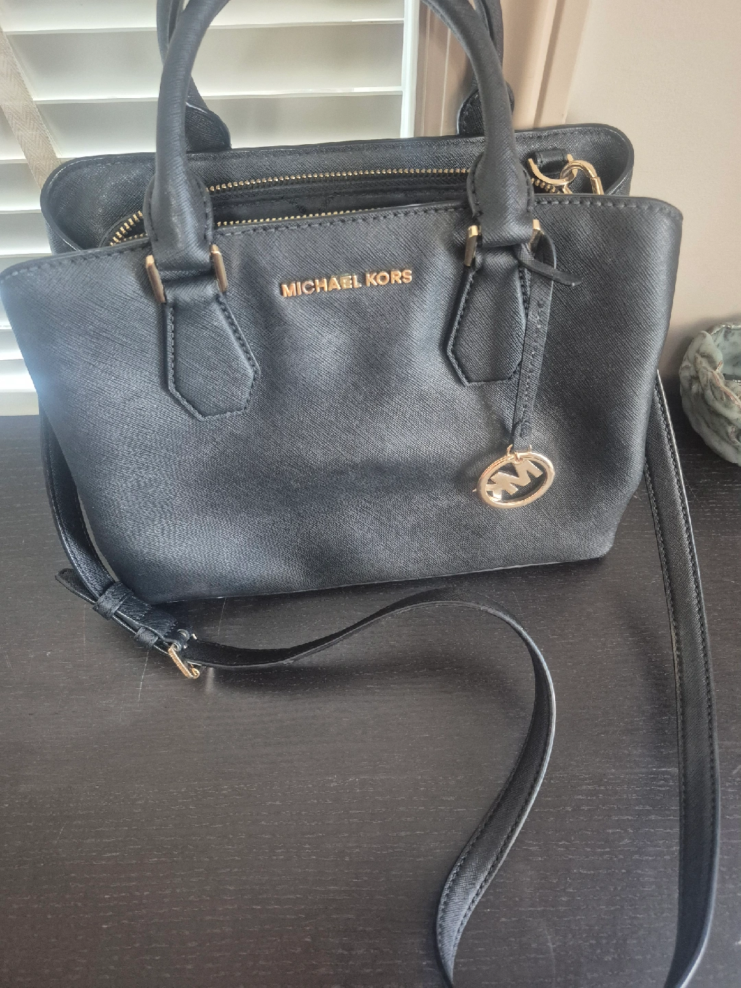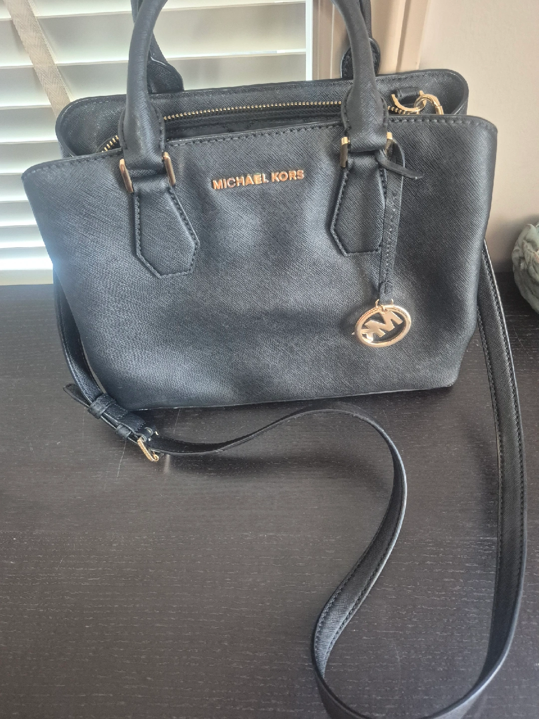 Selling a stylish black Michael Kors handbag! It's in great condition and perfect for everyday use or a night out. The bag features a classic design with gold-tone hardware and the signature Michael Kors logo. It comes with both handles and a detachable shoulder strap for versatile carrying options