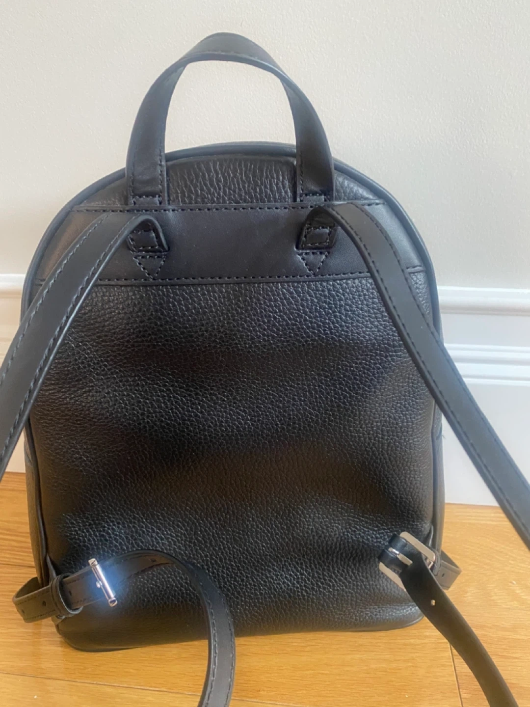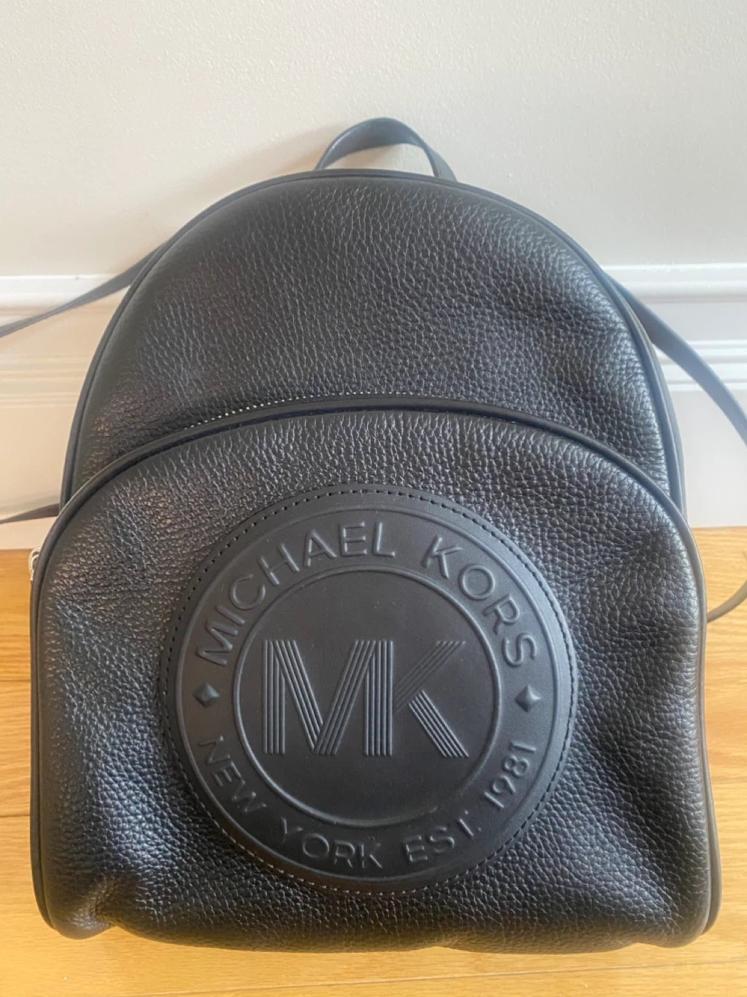 Selling a stylish Michael Kors backpack in black leather. It's in great shape and ready for a new owner! Perfect for everyday use or travel. The bag features the iconic MK logo and has multiple compartments for organization