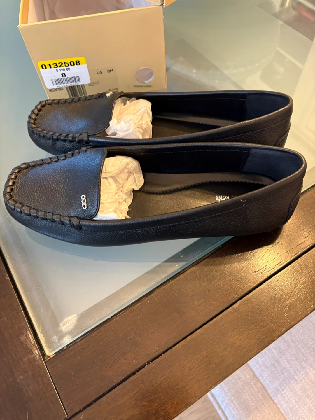 10Selling a pair of Michael Kors black leather loafers in US size 8! These stylish and comfortable shoes come with their original box. They were originally bought for $158. Perfect for everyday wear or dressing up!