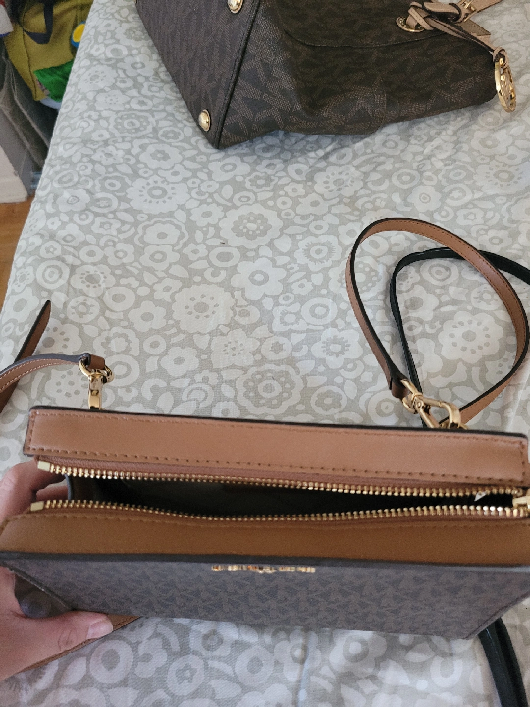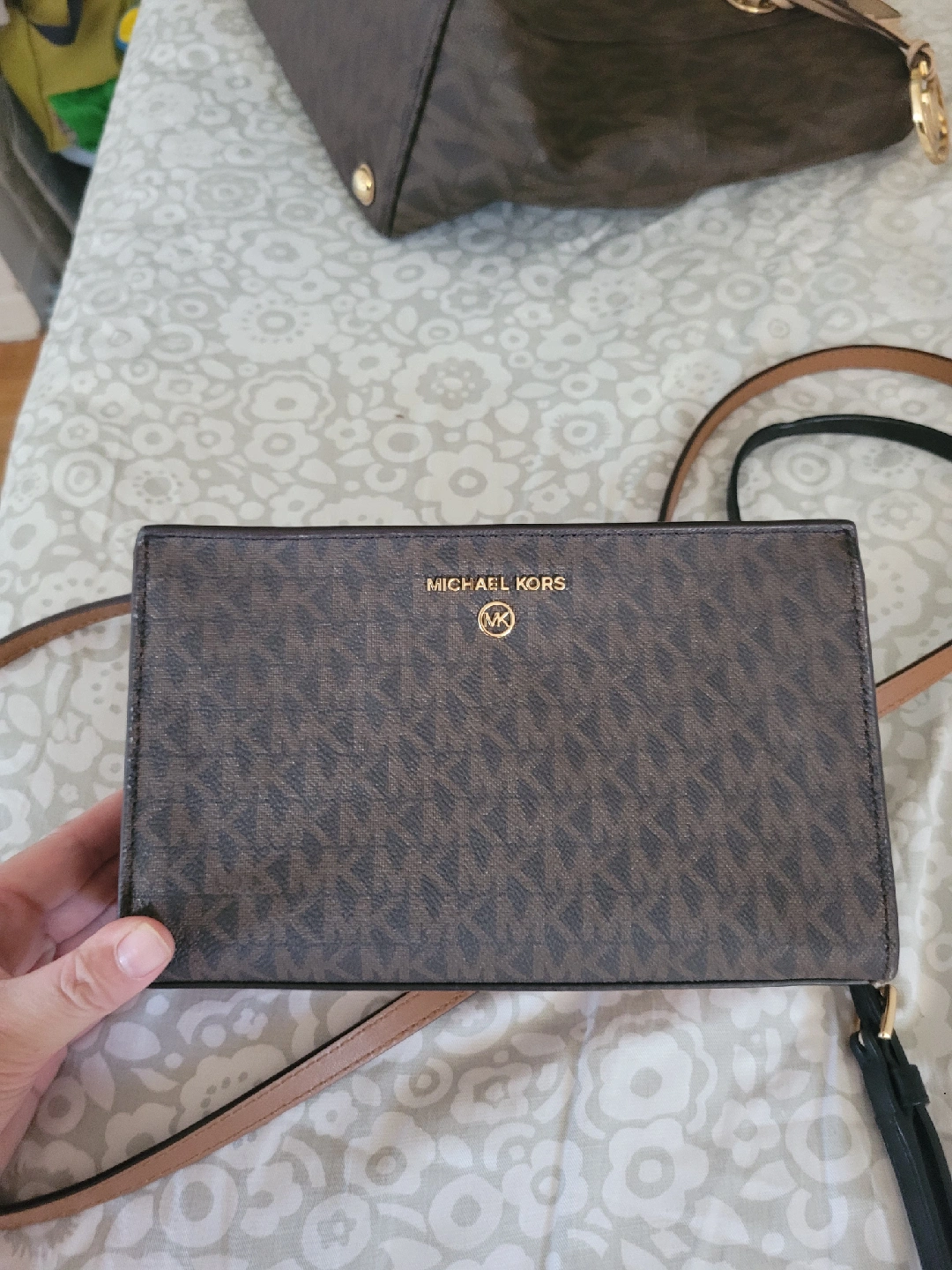Selling a Michael Kors crossbody wallet in the signature brown logo print! It has a long strap and is perfect for carrying your essentials. It's in good condition and ready for a new home asking $60
