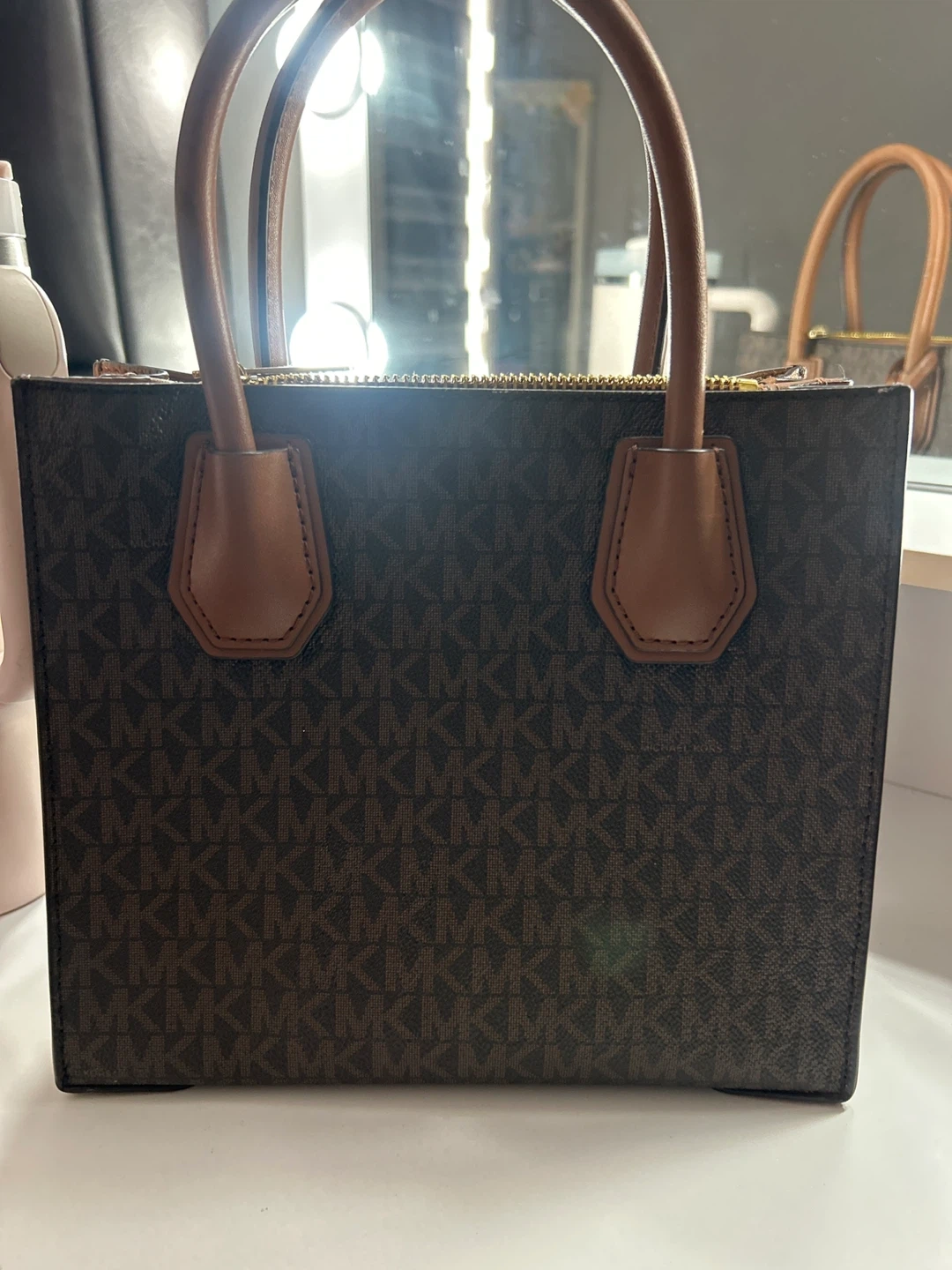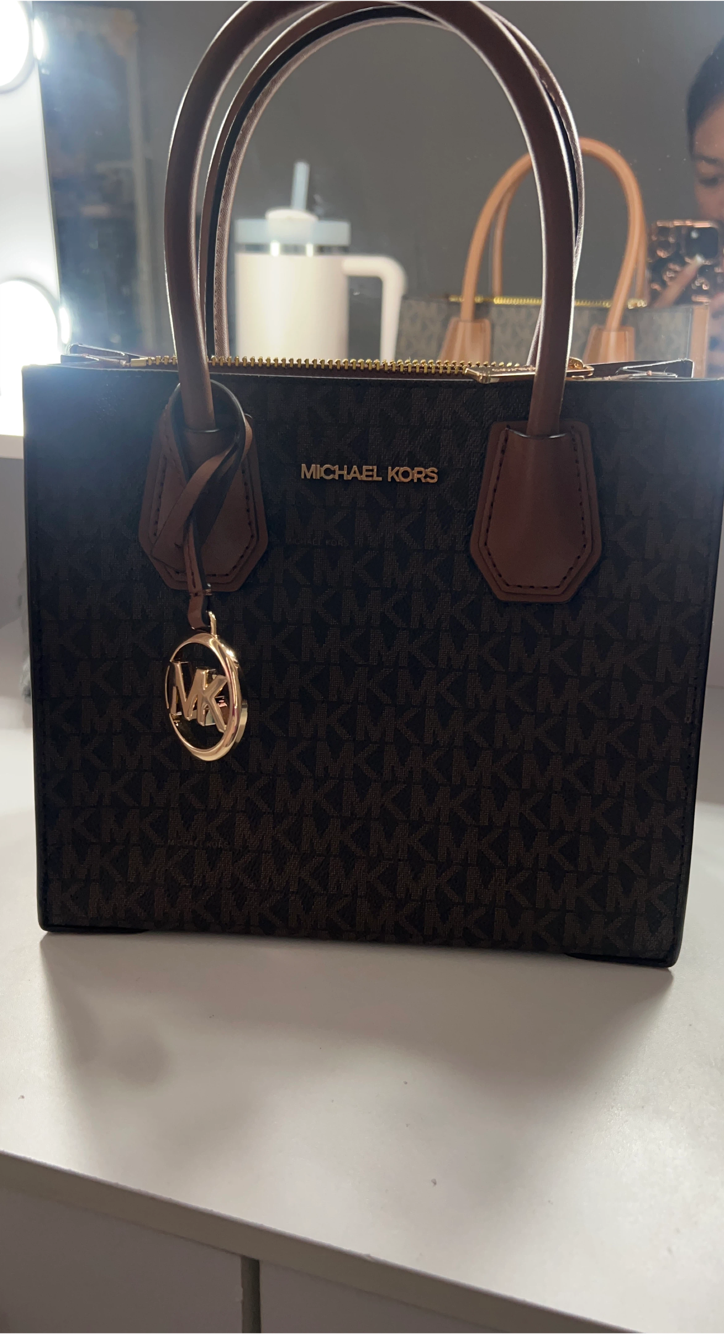 23Selling a Michael Kors tote bag in brown. It features the MK logo pattern throughout the bag. Great for everyday use! Barely used, only used on occasions.