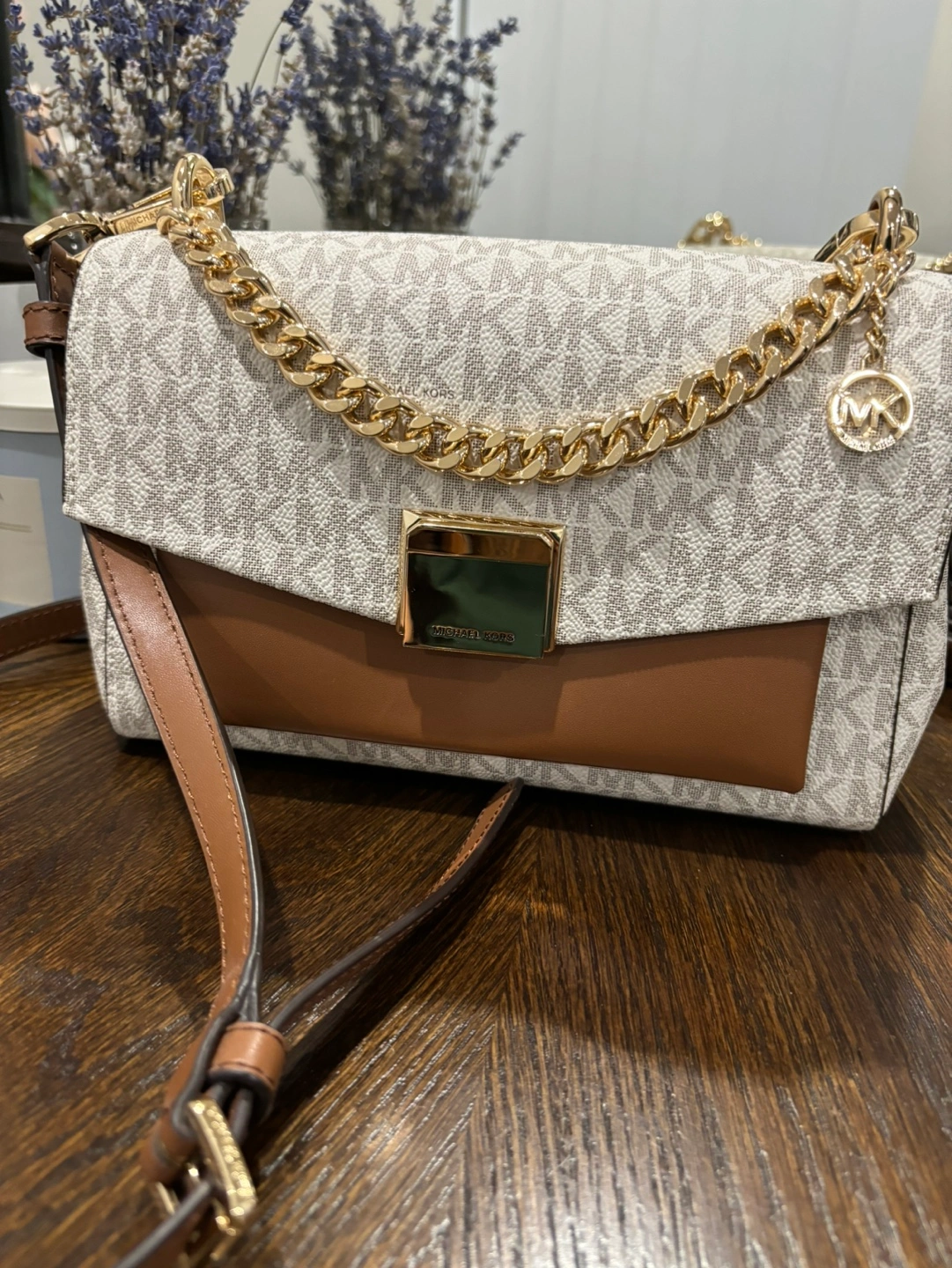 10Beautiful Michael Kors crossbody bag with gold touches. Comes with a lot of space for all your stuff !!