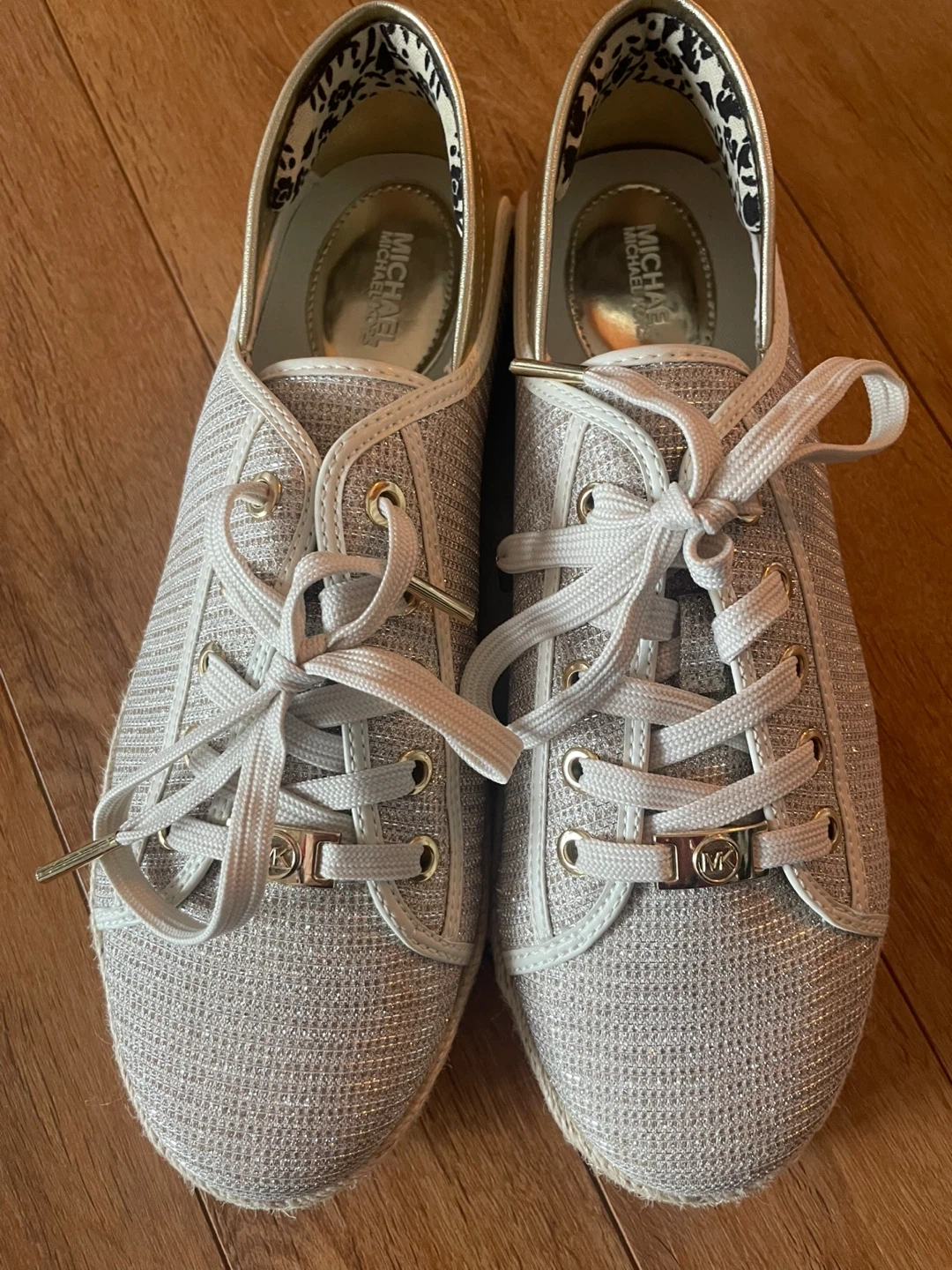92Selling a pair of Michael Kors glitter sneakers in a women's size 8. They're in great condition and ready for a new home! The glitter detailing adds a touch of sparkle to any outfit. Perfect for casual wear or dressing up a bit