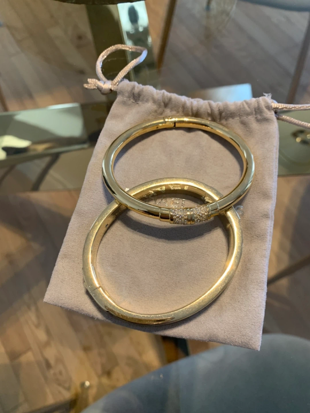 9Here's a set of gold-tone bangle bracelets from Michael Kors! They come with a dust bag. They are $50 each