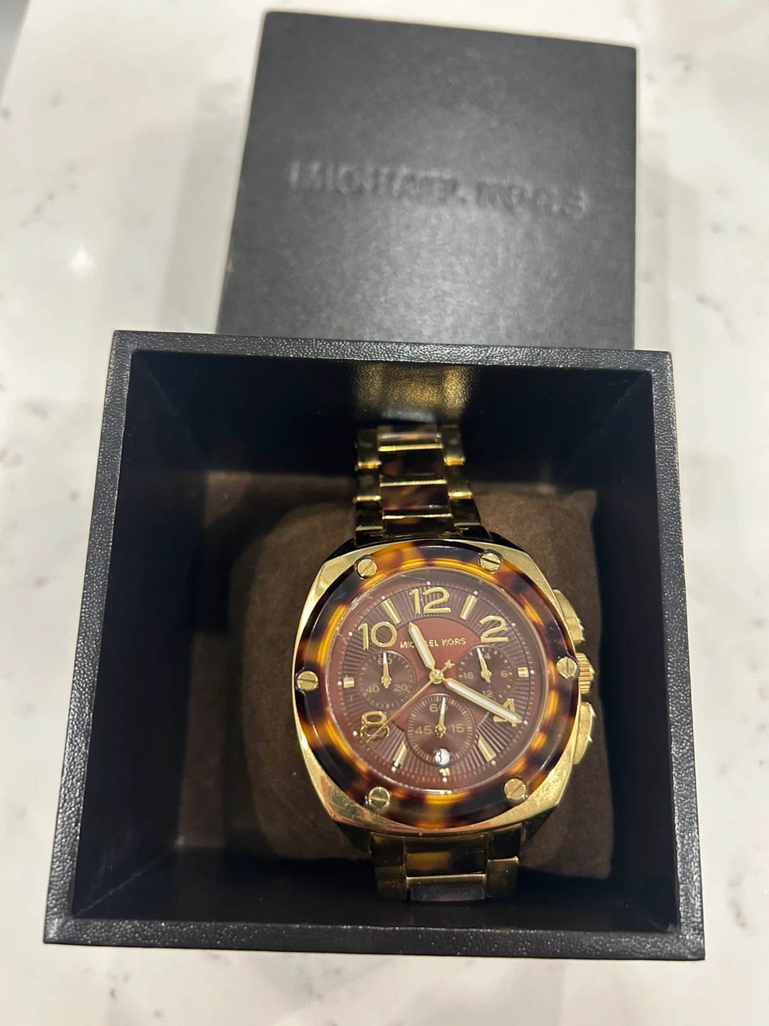 26Selling a stylish Michael Kors watch with a gold and tortoise design. It's in great condition and comes with its original box. Perfect for adding a touch of elegance to any outfit!