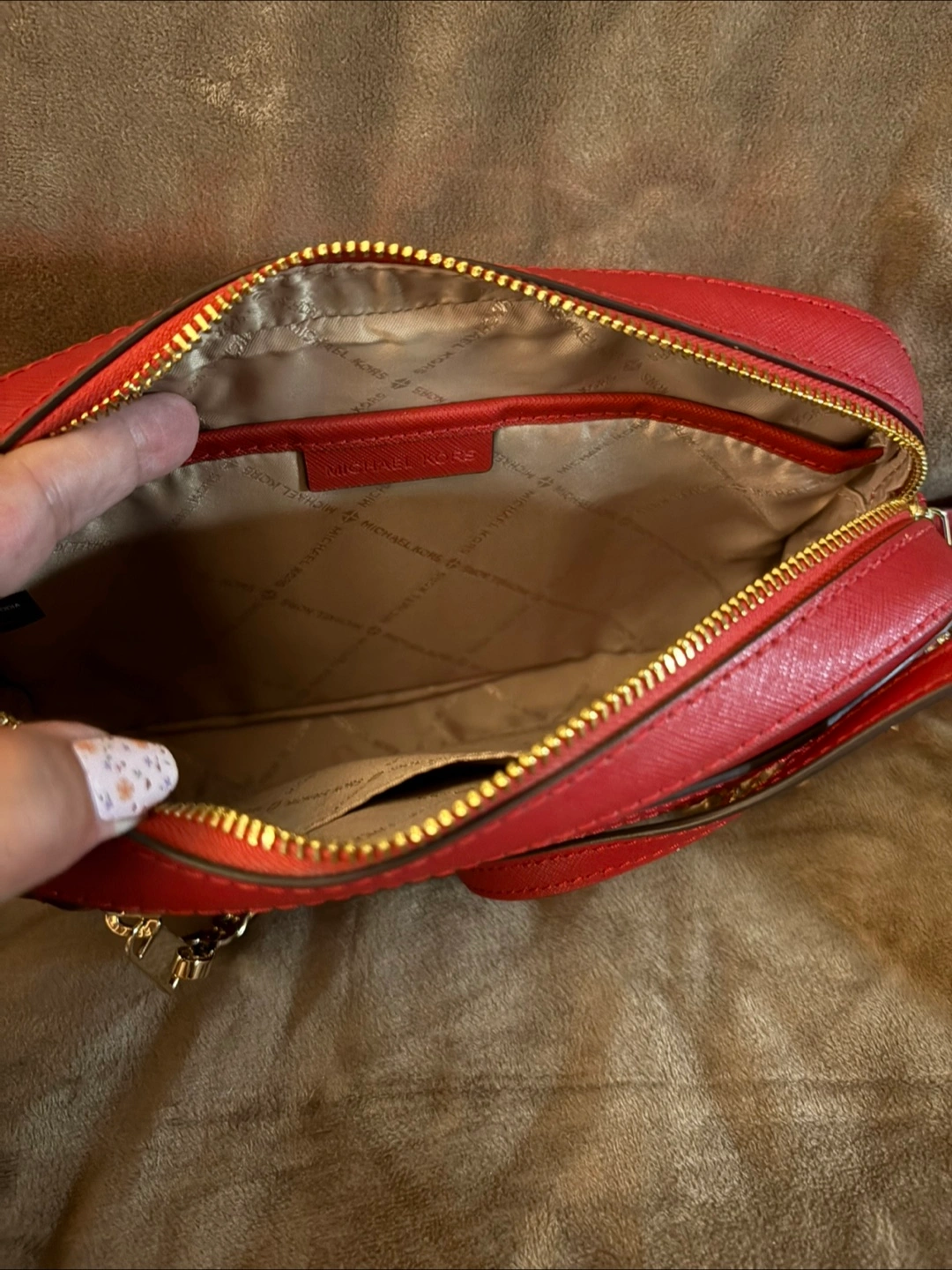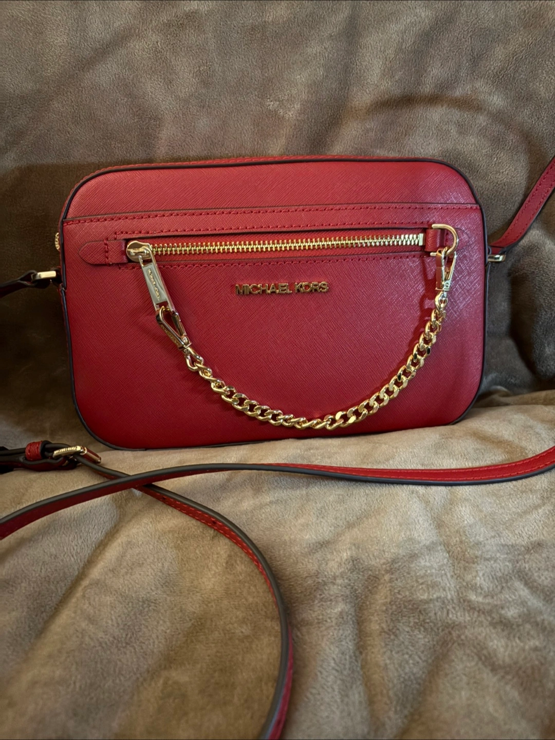 Selling a lovely Michael Kors Jet Set large crossbody, Saffiano Leather Bag in Strawberry. It's in mint condition. Never used.