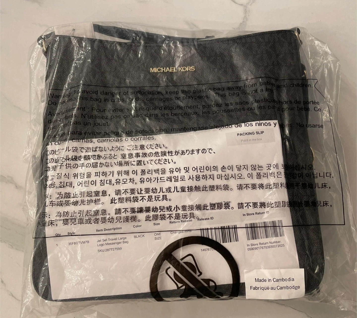 Brand New in packaging still. Selling a Michael Kors Jet Set Large Messenger Bag in black with gold accents! This stylish bag is perfect for everyday use and can hold all your essentials. Perfect for gift giving! Feel free to reach out if you're interested or have any questions.