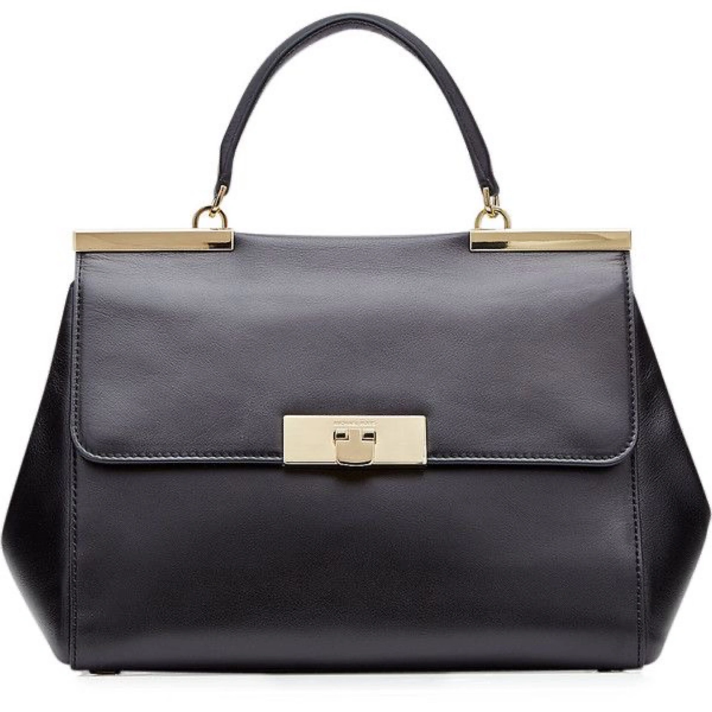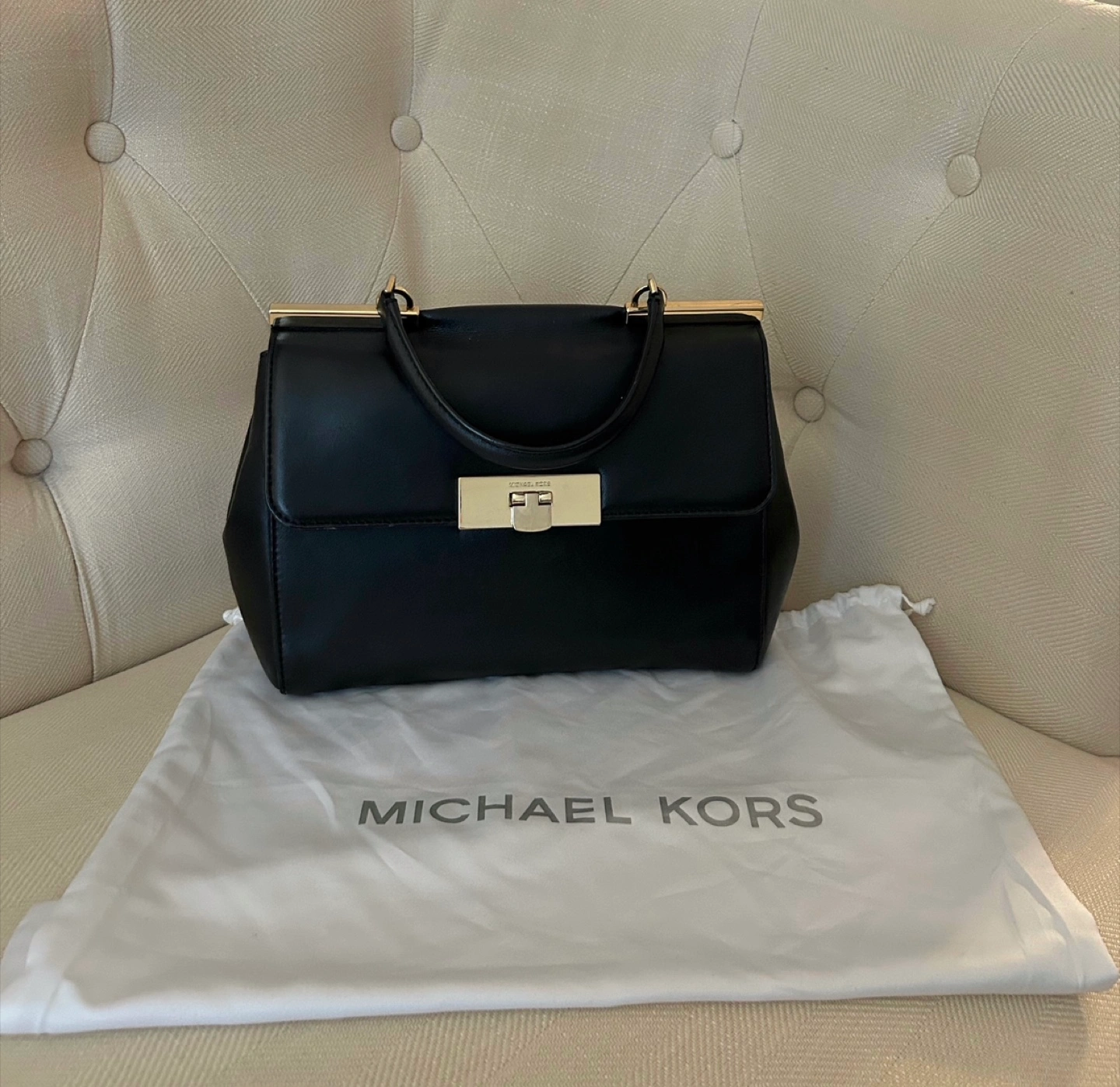 361Old Money Aesthetic Handbag A modern update on a feminine silhouette, the Marlow draws inspiration from a 1940s frame bag. The buttery calfskin exterior is accented with shiny gold hardware and a flap closure. It makes a timeless statement, whether worn over your shoulder or carried by its feminine top handle. *This elegant handbag comes with a detachable adjustable shoulder strap *Original dust bag included DETAILS: Leather satchel detailed with golden metal finishing, a top handle, a flap top with flip-lock closure and magnetic side buttons, expandable snap sides, a rear external snap pocket, a jacquard fabric lining, an inside zip pocket, a slot pocket, two cellphone pockets and protective metal feet. Composition: 100% Calfskin Leather Dimensions (inches): 11 x 8.3 x 4.7 Handle (inches): 3.9 Drop (inches): 23.6 Retail Price in Europe: 375 Euro π https://www.thebs.com/fr/large-marlow-satchel-michael-kors-19770