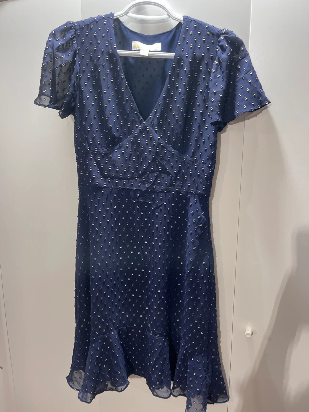 60Selling a Michael Kors navy blue dress in size XXS. It's in great condition and has a lovely dotted pattern. Perfect for any occasion!