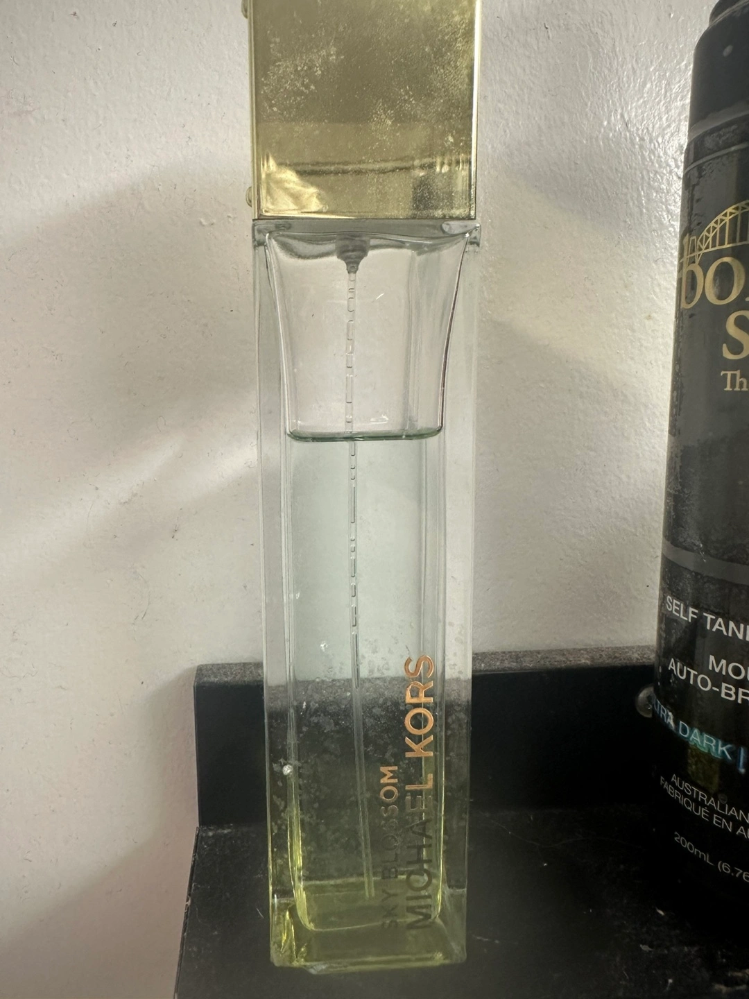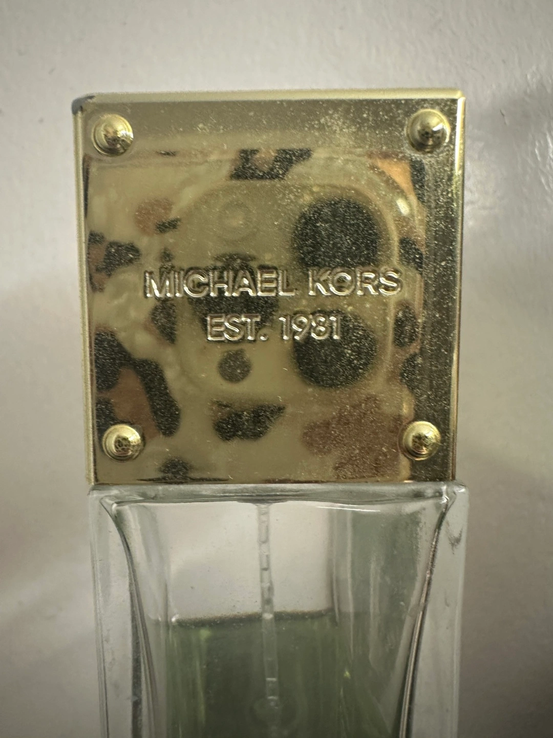Michael Kors perfume. Gold cap, clear glass bottle. Partial bottle.