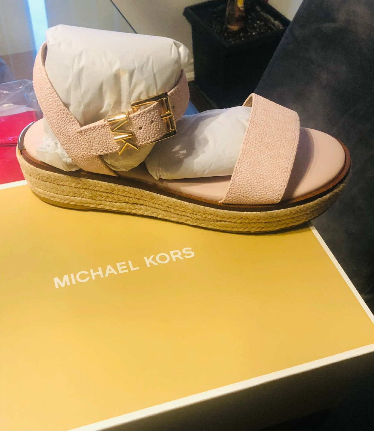 18Selling a Michael Kors set that includes pink sandals and a backpack! Both items are brand new and come with their original packaging. The sandals feature a stylish espadrille platform, perfect for summer. The backpack is a vibrant pink with the MK logo pattern. Great for school or travel