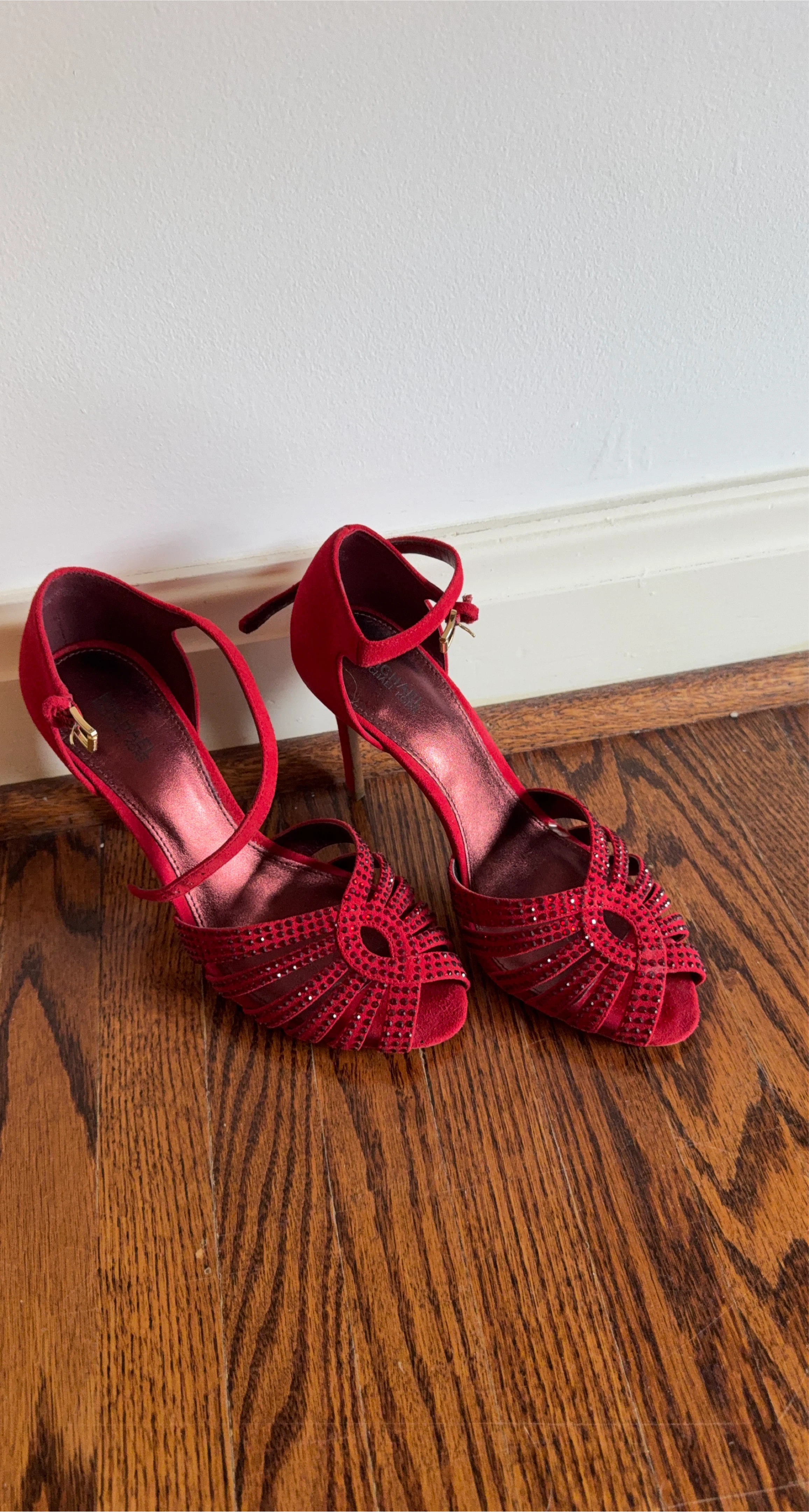 These red Michael Kors heels are in great condition and ready for a new home! They feature a stylish design with delicate detailing. Perfect for adding a pop of colour to any outfit!
