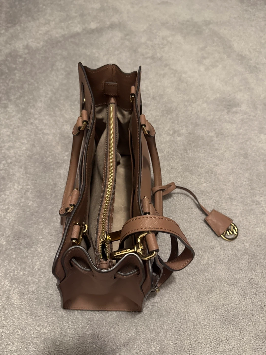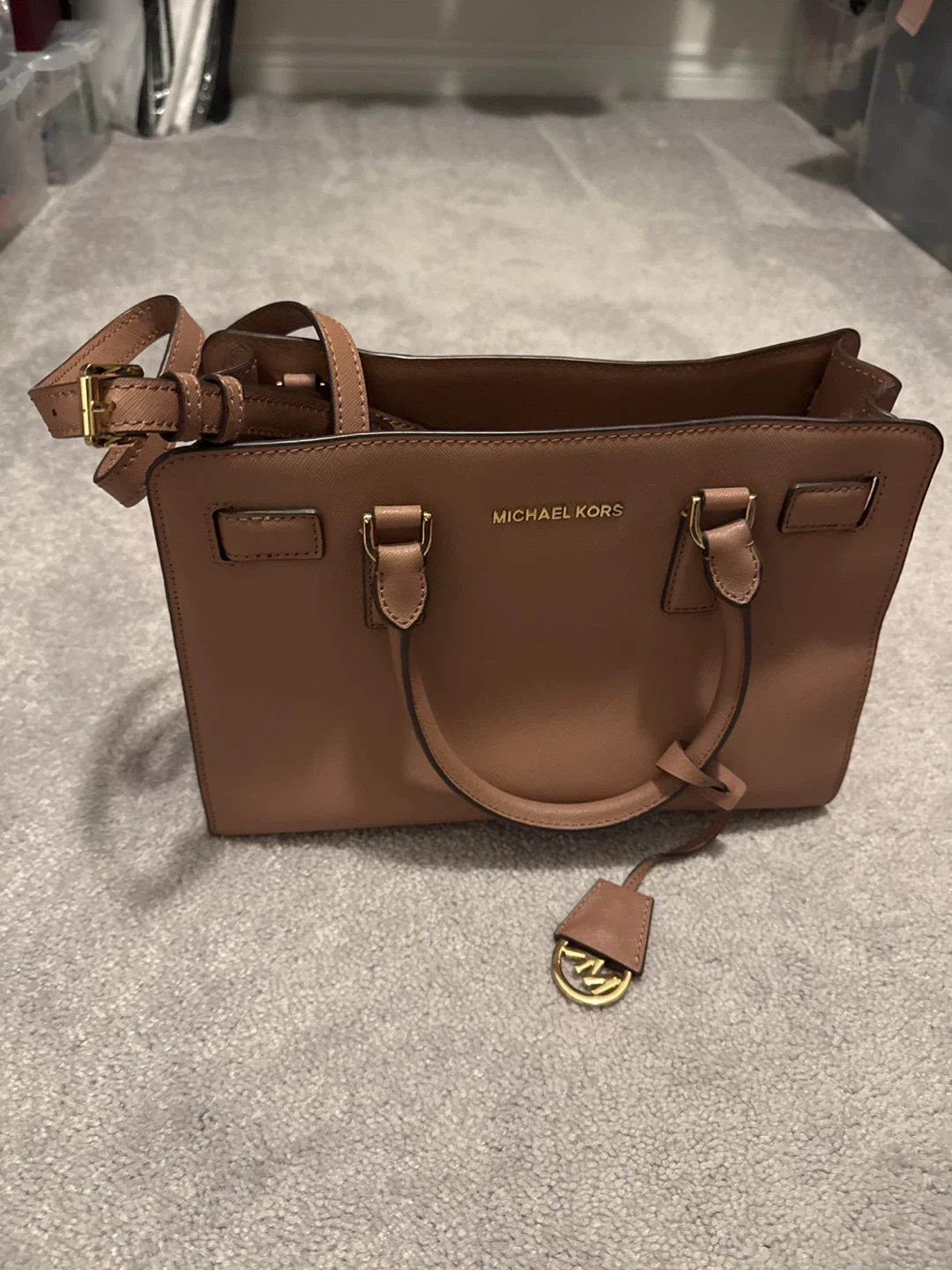 10Selling a Michael Kors satchel. It's in great condition and a lovely neutral colour! Perfect for everyday use or a night out. Feel free to message me with any questions!