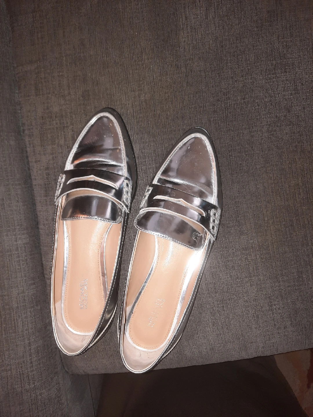 Selling a pair of Michael Kors loafers in silver! They're in great shape and ready for a new home. Perfect for adding a touch of shine to your outfit 7 and a half