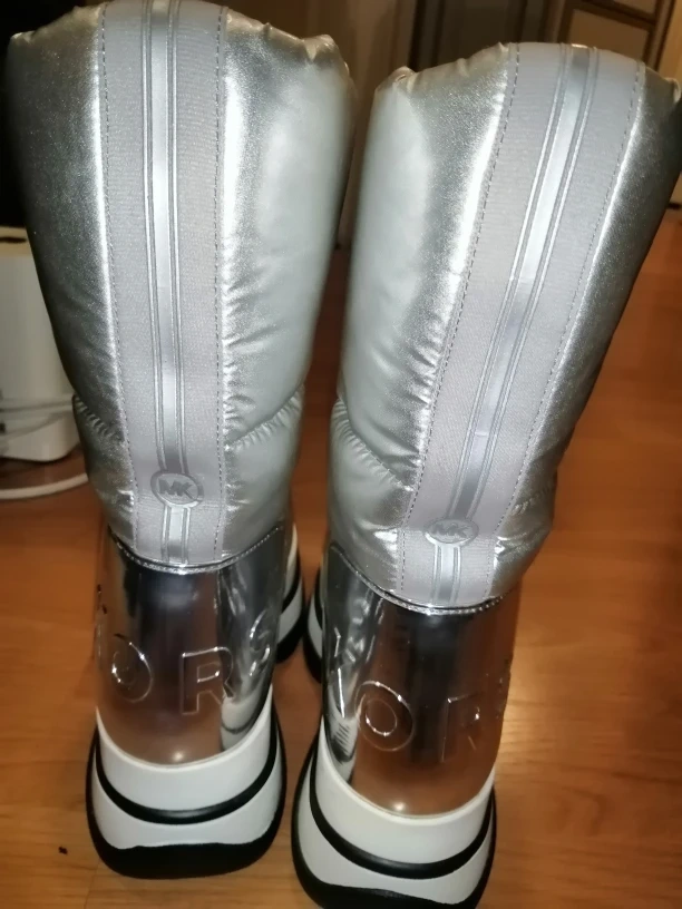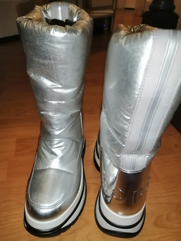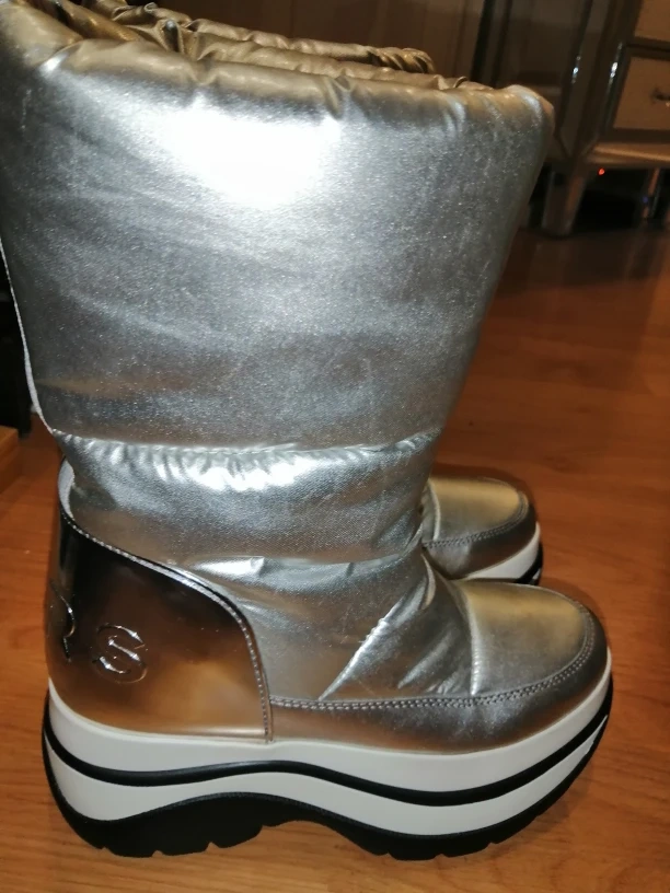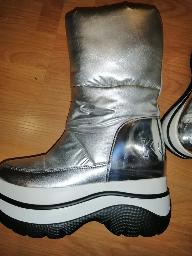 111Silver puffer snow boots. Platform sole. Great for winter. Brand new.