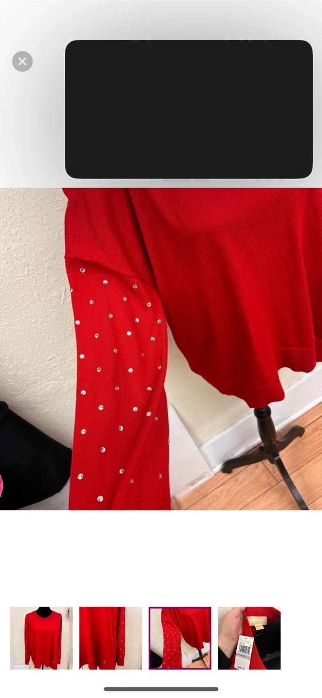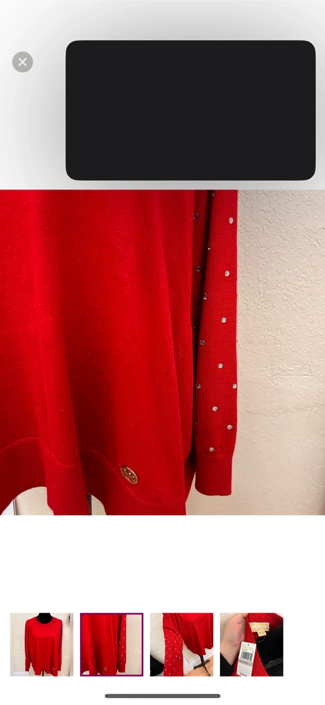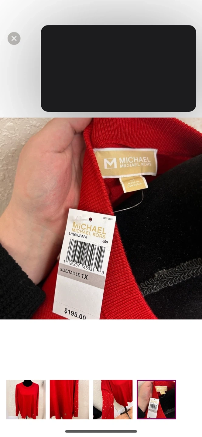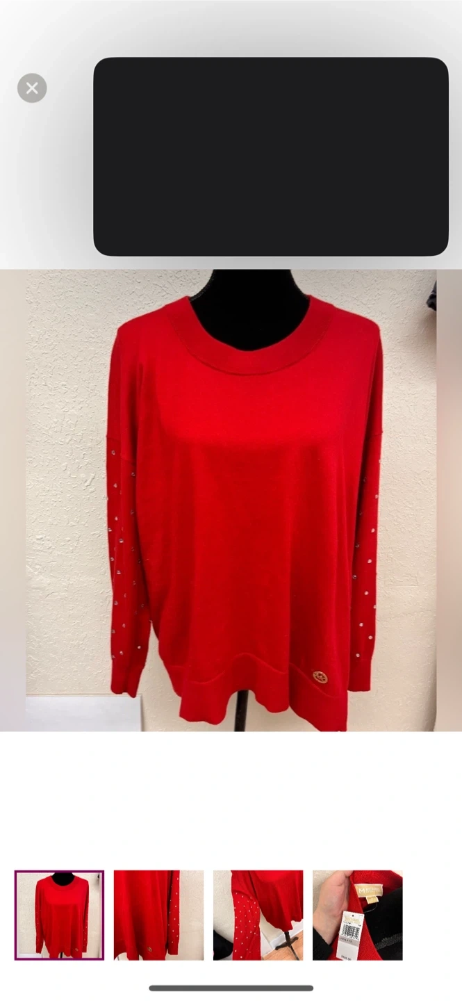 Michael Kors brand. Pullover sweater. Red with silver sequin sleeves. Size 1x. Brand new with tags Asking $100 Pickup between kincardine & ripley or I can arrange delivery in port Elgin-Owen sound, walkerton-Durham, wingham-listowel-kw/cambridge, goderich-bayfield, Woodstock & Arthur-Orangeville-Newmarket-Lindsay-Peterborough AREAS.
