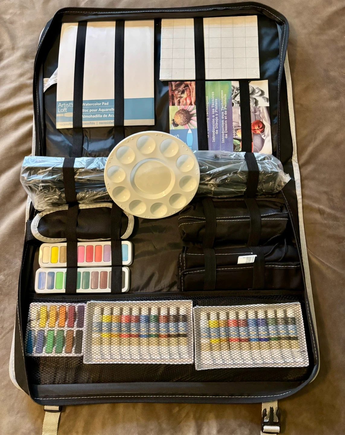 15**FINAL REDUCTION (for a limited time only): $40 is ridiculously good for an art set that’s practically new** New year, new you, new hobby…but why wait until January to start something you love?! After all, with the arrival of this miserable and inclement weather and the long, dark nights, this is the PERFECT time to enjoy a new pastime. For creativity on the go, this art set would also appeal to experienced artists seeking portable solutions thanks to its lightweight easel. The set also comes with a convenient carry bag, making it easy to transport your materials wherever inspiration strikes, and includes a spacious art portfolio, ideal for storing and transporting your artwork. Whether you're a painter, sketch artist or both, enjoy spending some quality “me time” relaxing and letting your creativity flow with the necessary high-quality painting and drawing essentials at a fraction of the price! The set includes: Messenger bag (carry case) Metal folding easel Easel carrying case 10 watercolor paints 10 acrylic paints 12 oil pastels 12 soft pastels Plastic palette 3 plastic palette knives 5 sketching pencils 8 watercolor pencils 10 colored pencils 10 watercolor cakes 3 golden synthetic brushes 3 white synthetic brushes Mixed media pad 2 canvas boards Pencil pouch Brush carrier Vinyl eraser Plastic 2-hole sharpener Tips & Techniques Booklet The typical retail price of this set is over $95, and so I’m offering it at a fair, discounted rate as it’s missing three bristle paint brushes (not listed above); everything else hasn’t been used and remains untouched since it was purchased.