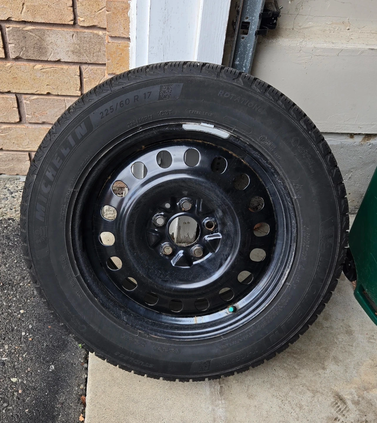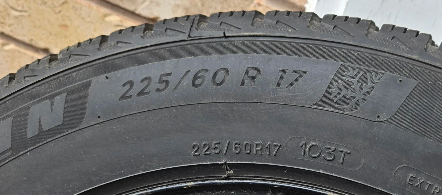 10Selling a Michelin X-Ice winter tire size 225/60R17 center bore size 67.1 mm bolt pattern 5x114.3 used only 2months last year, selling because bought a new car. 98% new and thread Ready for the snowy season!
