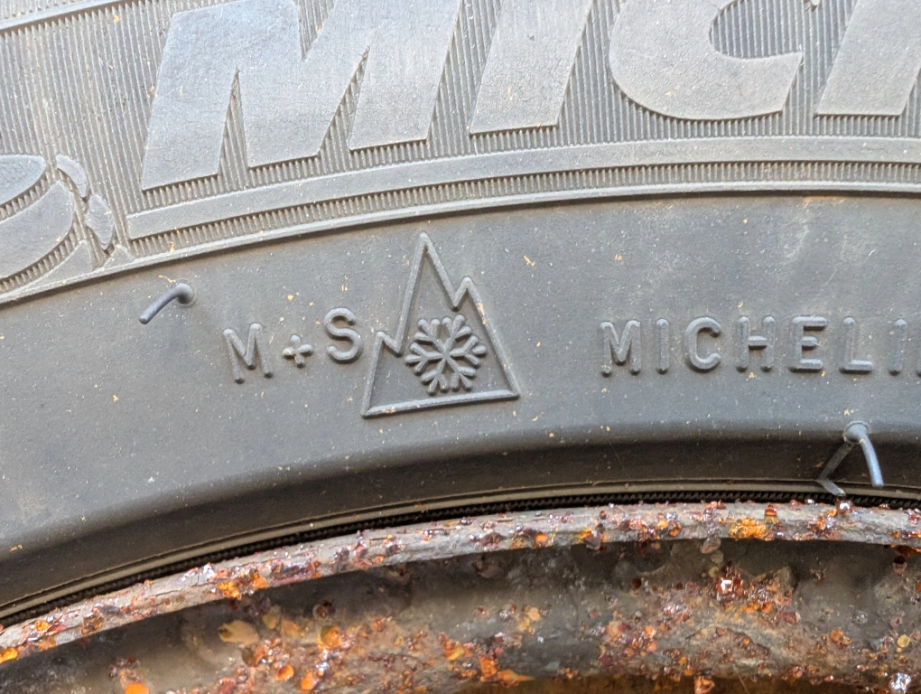 Selling a set of Michelin winter tires marked with M+S. They're great for winter driving conditions. 4 tires good tread. patch free. with rim