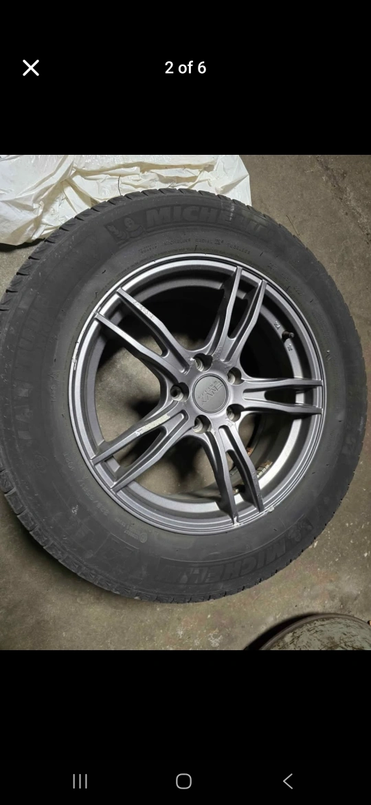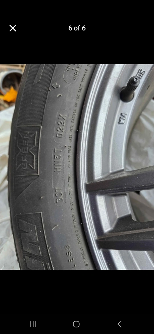47Michelin tire mounted on rims. The tire shows some wear, as seen in the pictures 2256517. Envy rims