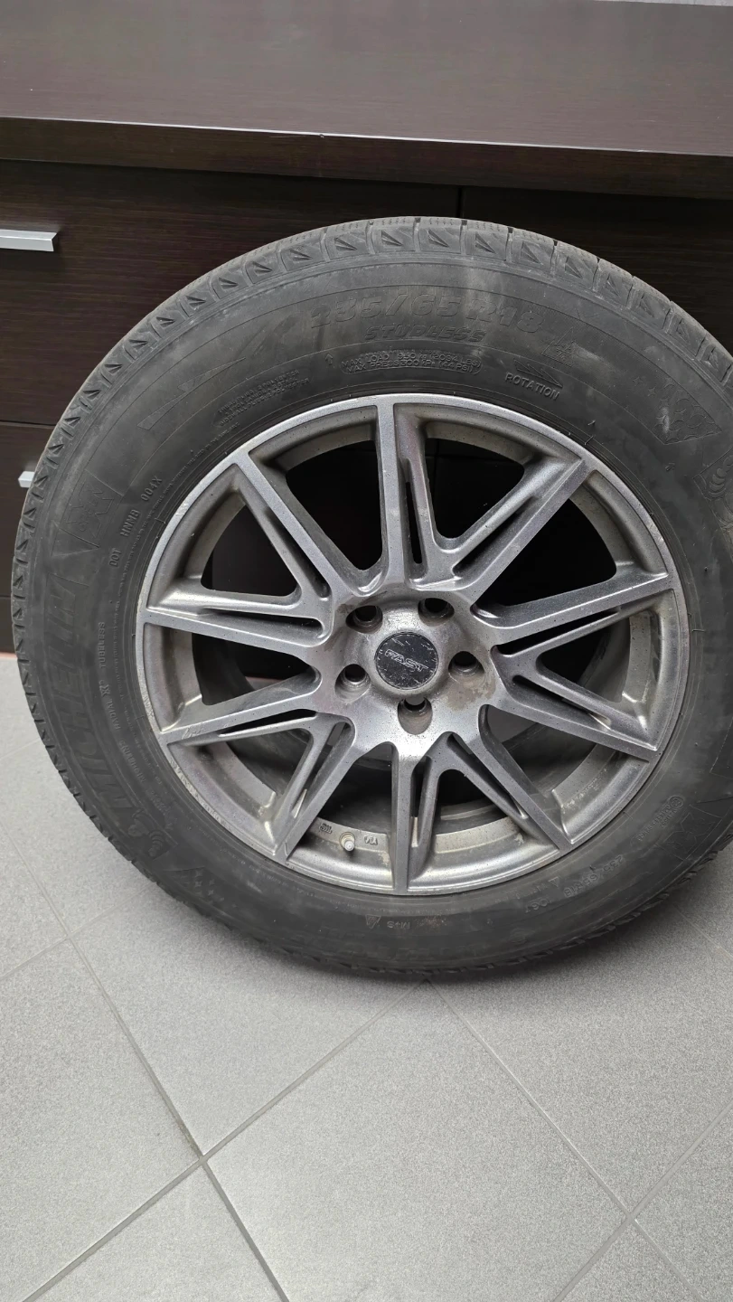 10Selling a used Michelin tire mounted on a Ronal rim. The tire size is 235/65R18 and the rim size is 18x8J. It shows signs of wear but is still functional.