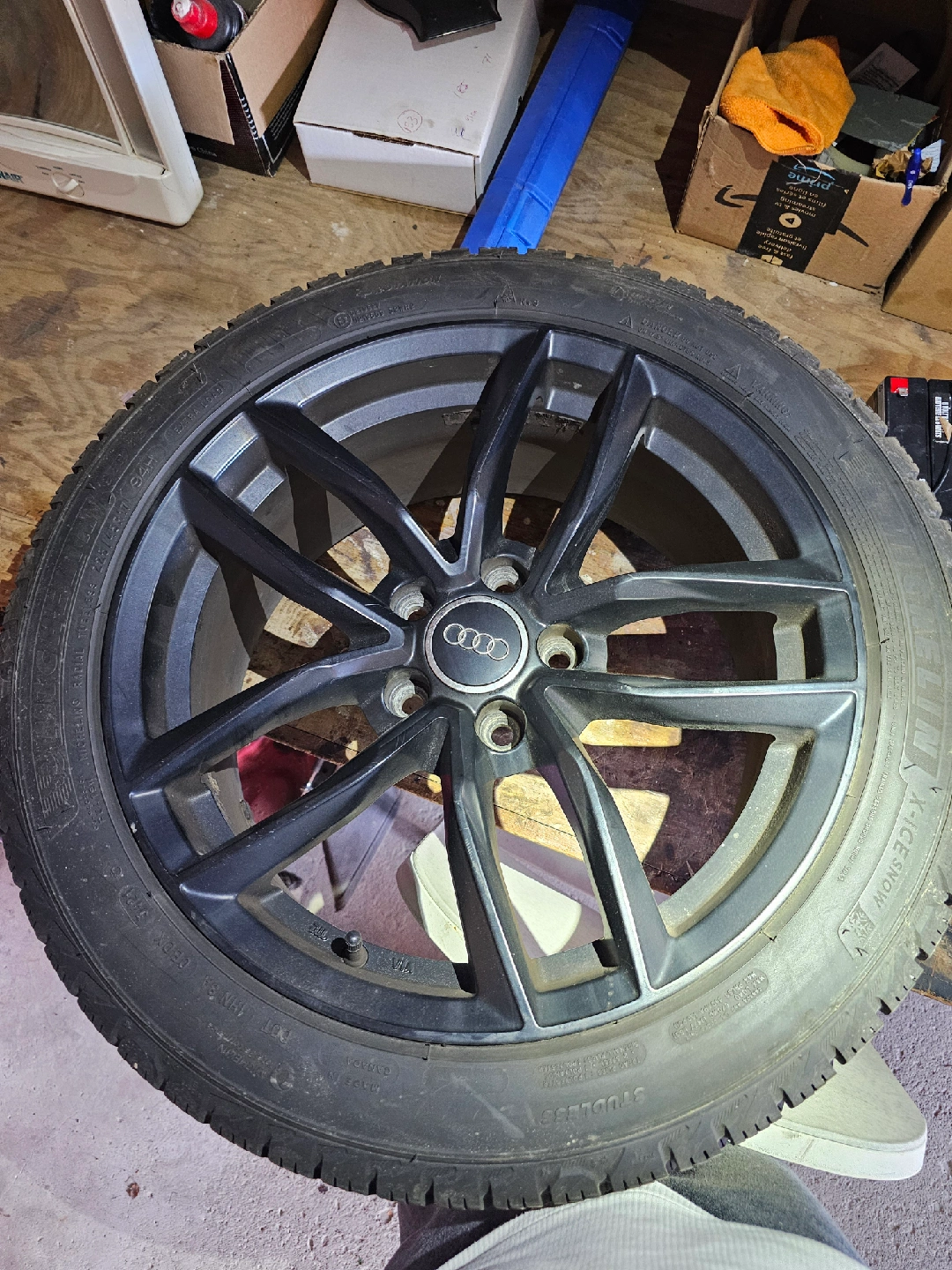 Rims and Tires Michelin x-ice. Black Rims. 225/45/17 dot 3421. Good condition. Comes with 4-rims, 4-tires (Michelin x-ice). Tire and rim came off a 2017 audi a3 using hub rings. Price is $600 firm. 5x112 lug pattern Pls dont waste your and my time. Price is firm. See all pics and read description.