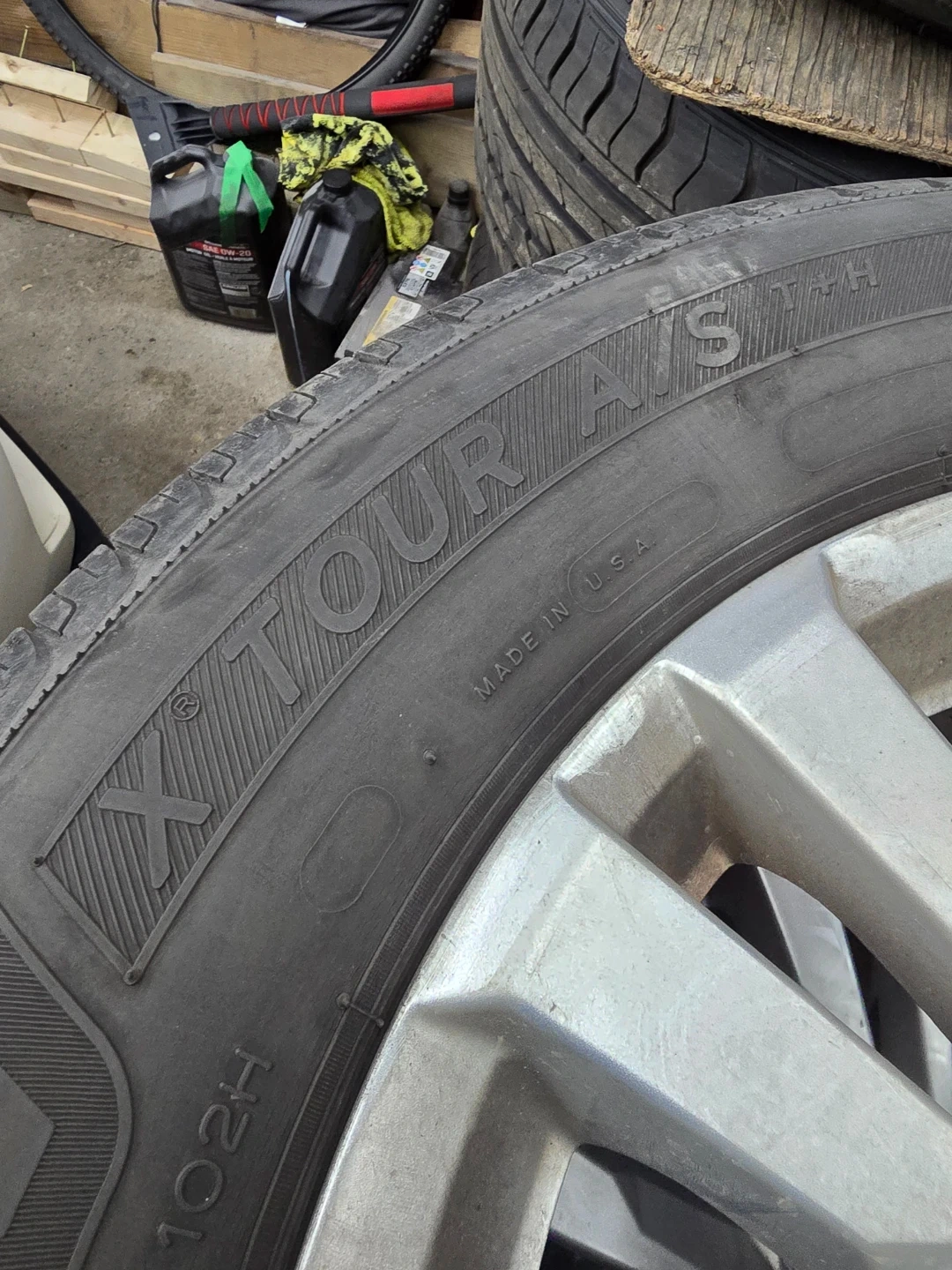 175Selling a set of Michelin X Tour A/S tires mounted on Chevrolet equinox wheels. Purchased from costco and no longer have the car so needs to go.