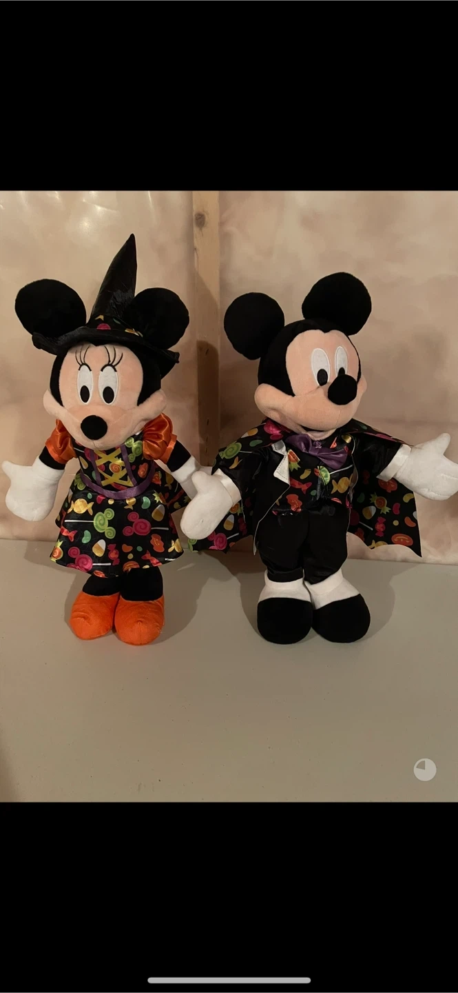 Selling a set of Mickey and Minnie Mouse Halloween plush greeter statues. They're dressed in their Halloween costumes and ready to celebrate the spooky season! $40