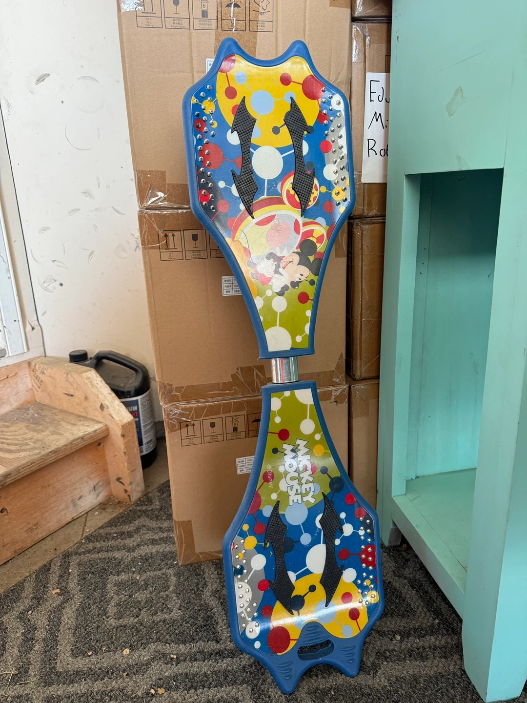 Selling a fun Mickey Mouse caster board skateboard! It's in good condition and ready for some sidewalk surfing. Perfect for kids who love Mickey Mouse and want to try a new way to ride