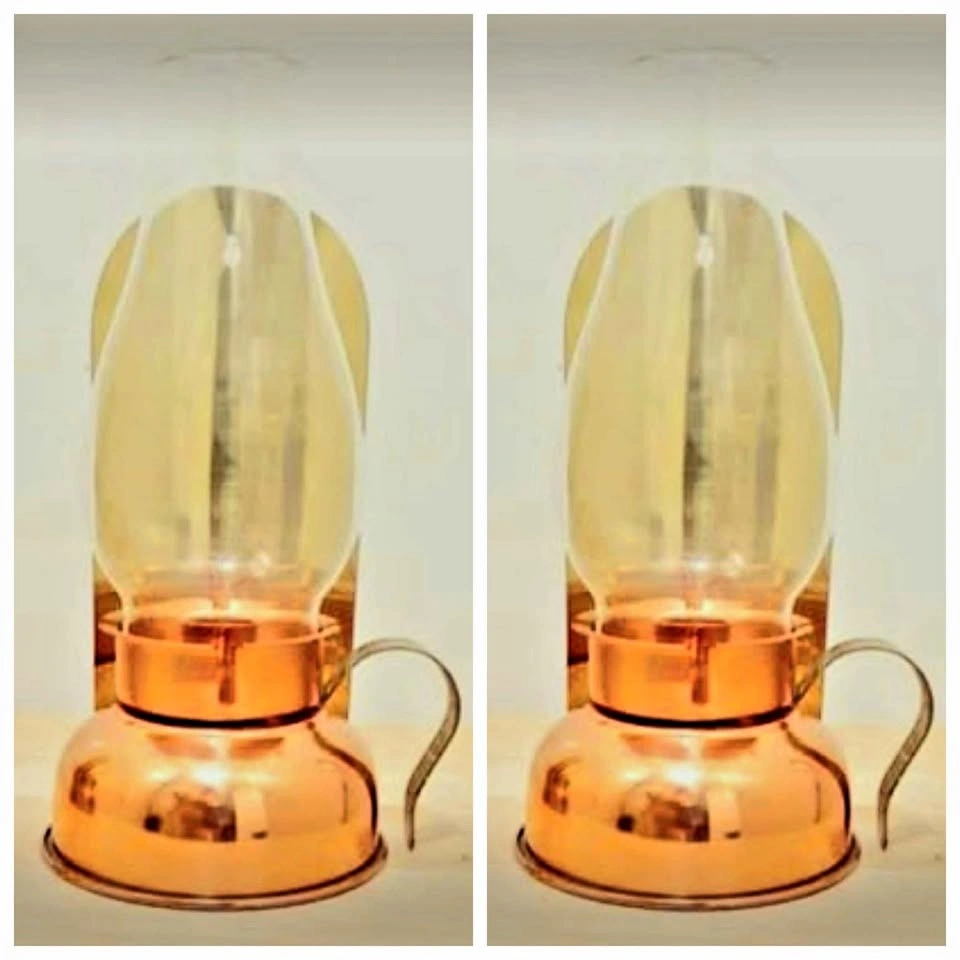 65Pair of Mid Century, Rare, Collectible Coppercraft Copper and Brass, Candle Wall Sconce / Table Lamp With Glass Globe. Decorative, Household Emergency Light. Excellent Condition. Please check out my other rare collectibles!