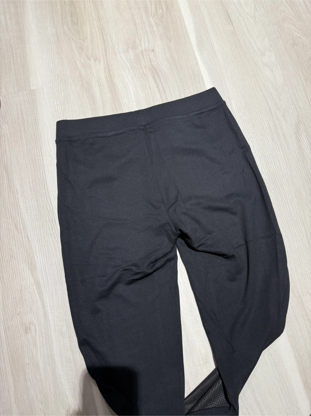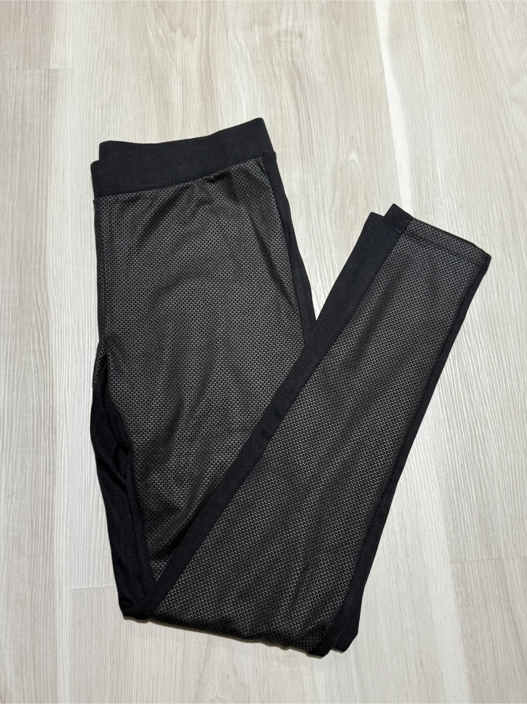 794No size, but the waist starts at 28 inches, can be stretched to 32 inches. Never worn. The pattern is only at the front, and the back is plain black. Fits like leggings but thicker than a regular leggings Meet at Queens Quay and York