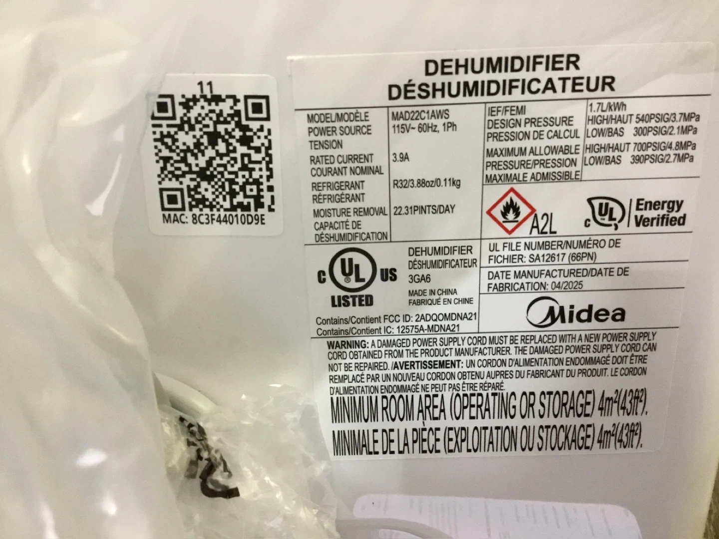 Selling a brand new Midea dehumidifier. It can control humidity and tank alerts with SmartHome. It also has two methods of drainage: continuous and bucket. Dimensions: - Height: 19.8 inch - Width: 10.51 inch - Length: 15.31 inch