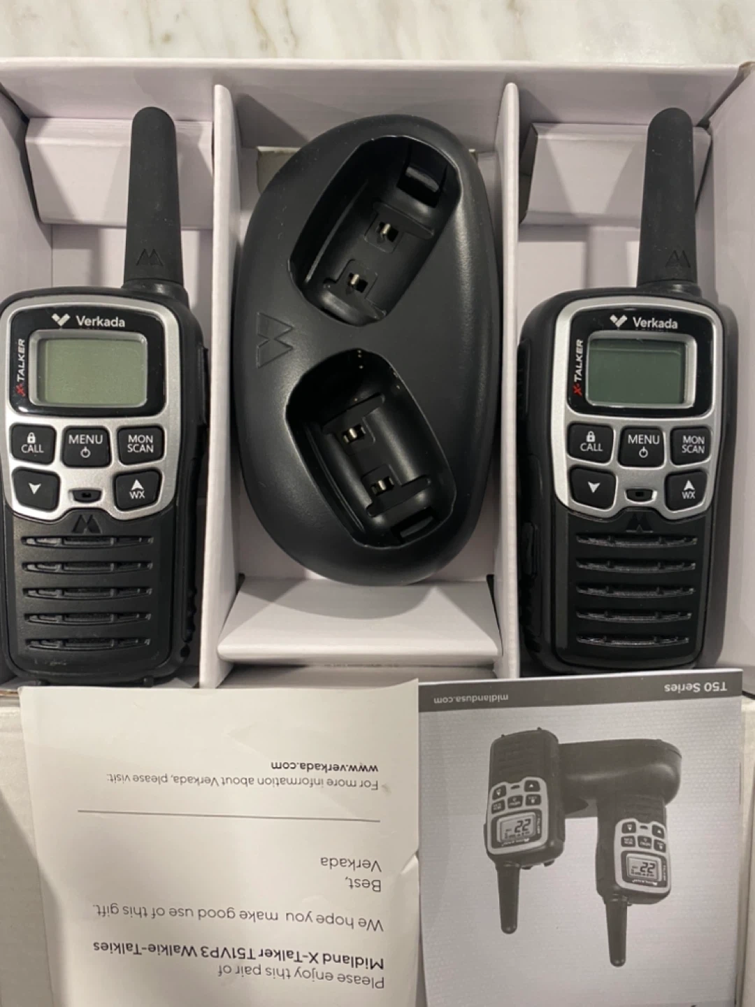 Selling a brand new set of Midland X-Talker T51VVP3 two-way radios! These are still in their original box and include the charger and instructions. Great for staying connected on outdoor adventures or just around the neighbourhood. They're lightweight and portable, making them easy to carry around. Perfect for camping, hiking, or any activity where you need reliable communication