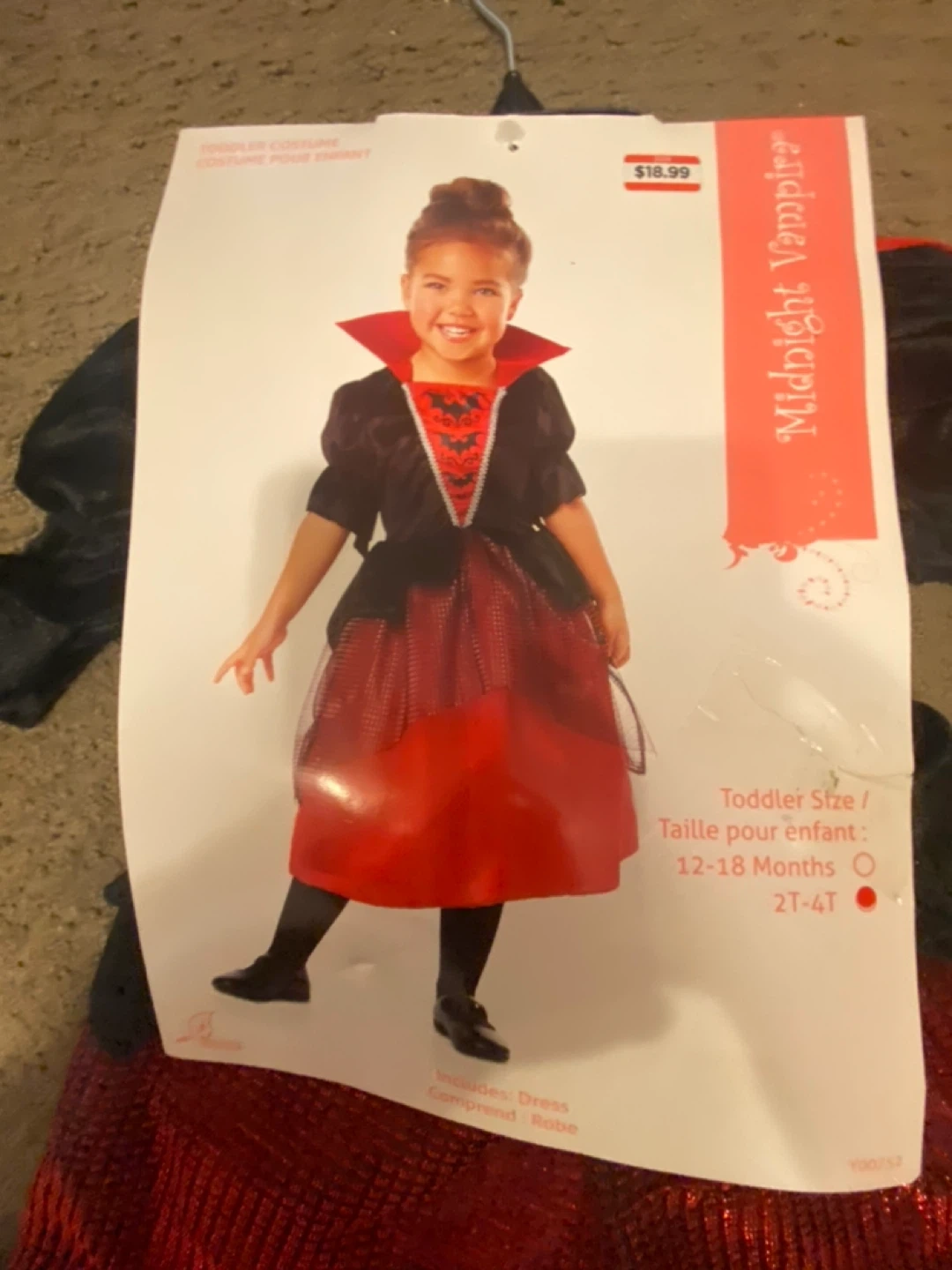32Selling a cute Midnight Vampire costume for toddlers! It's a size 2T-4T and includes the dress. Perfect for Halloween or dress-up!