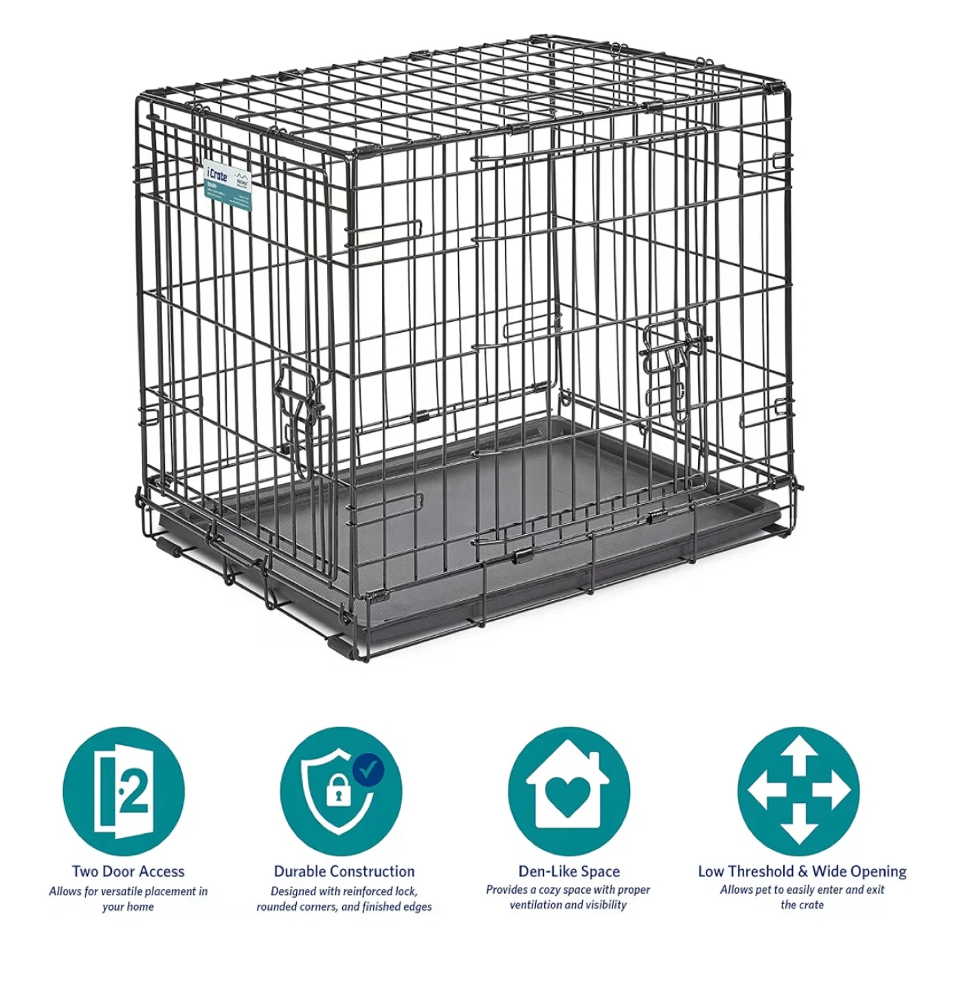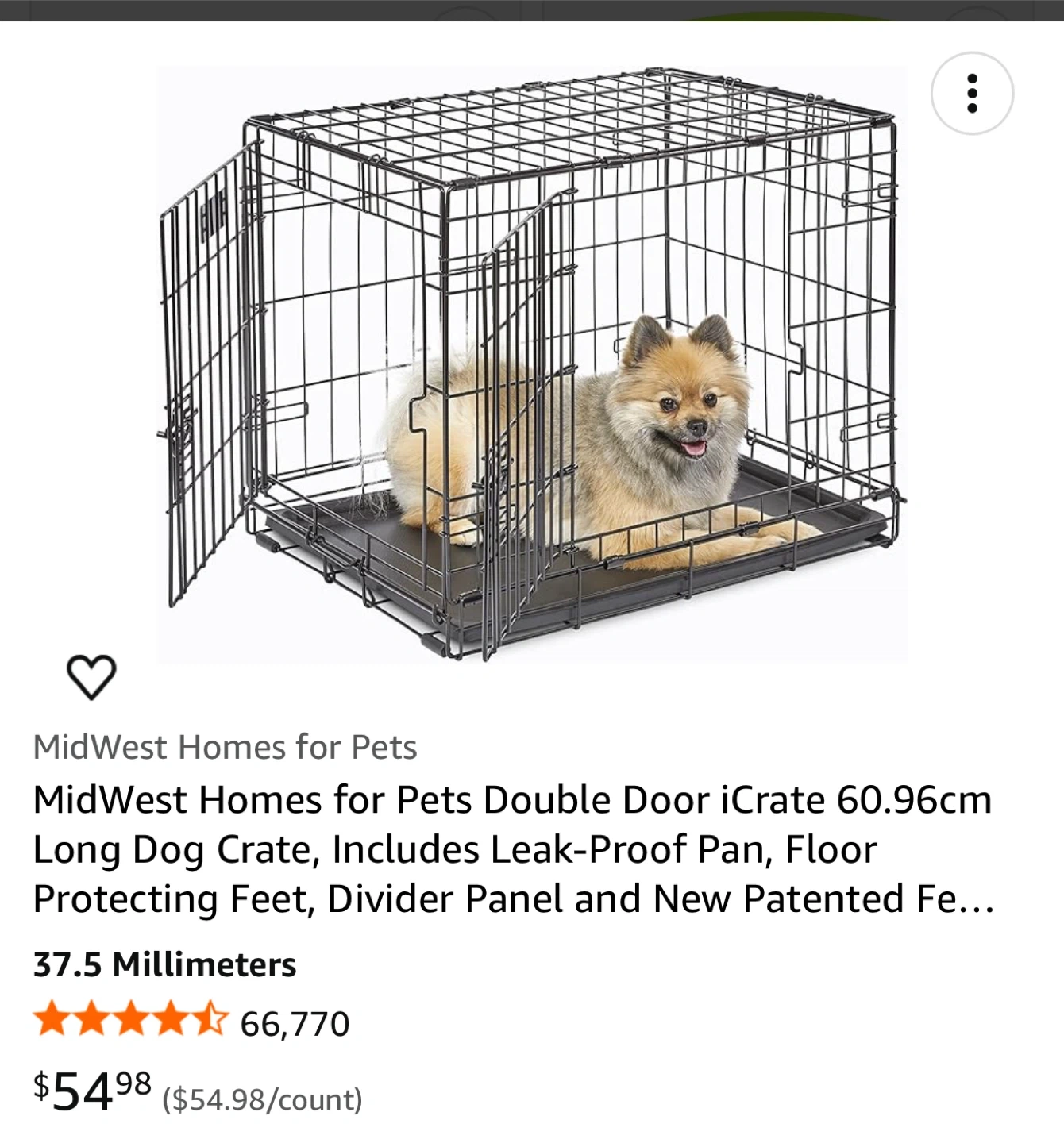15Selling a MidWest Homes for Pets iCrate double door dog crate. It's in great shape and ready for a new furry friend! - Dimensions: 60cm length x 43cm width x 49cm height - Includes a leak-proof pan and floor-protecting feet - Features a divider panel - Two door access for versatile placement - Durable construction with reinforced lock and rounded corners - Provides a den-like space with proper ventilation and visibility