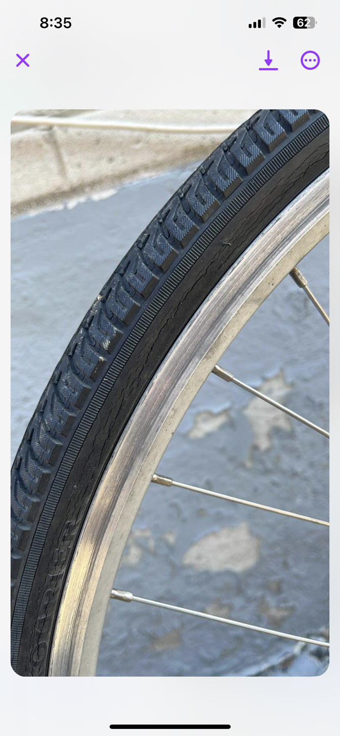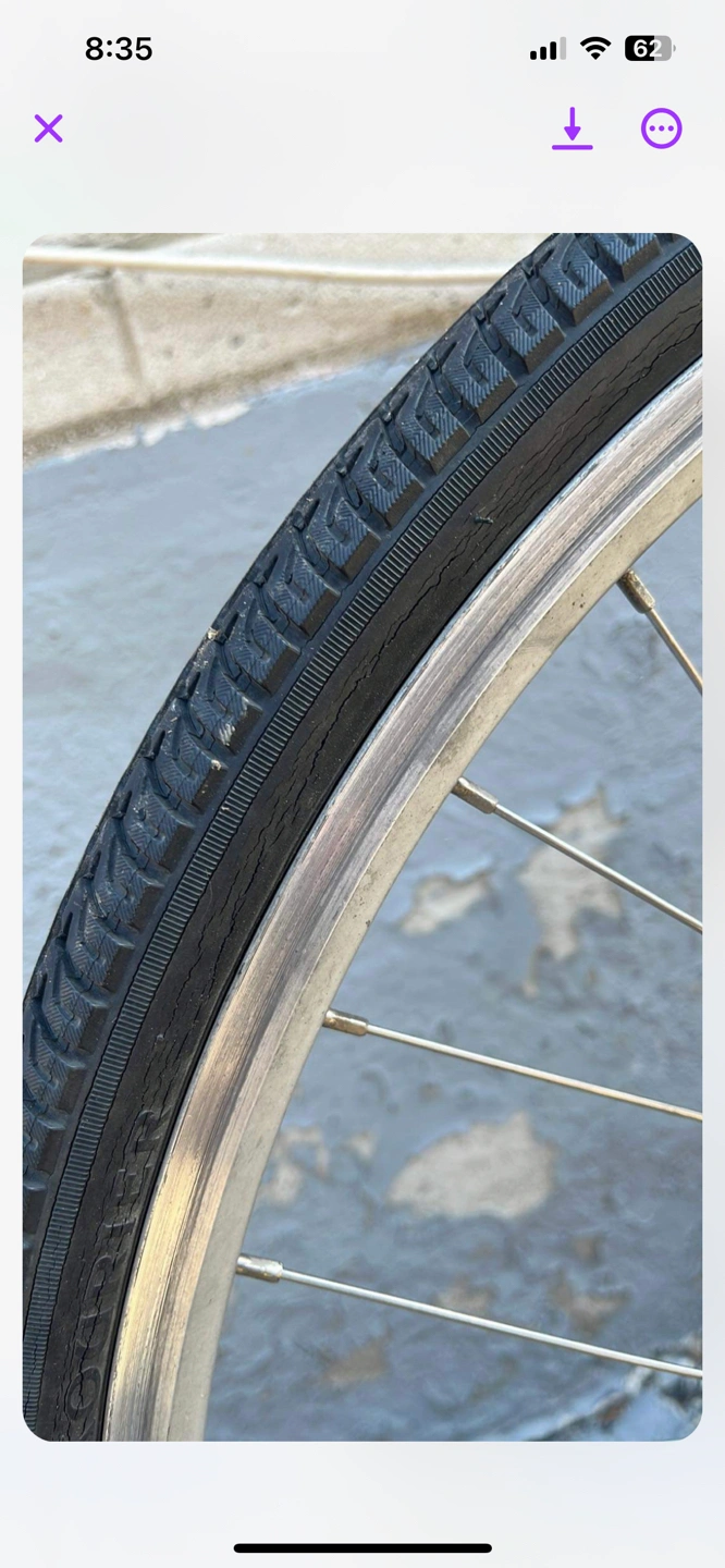 13Selling this hybrid bike with 700cx38 tire size. it may need new tires as its crack but still rideable. rust in some parts, it may need a liitle tuning.