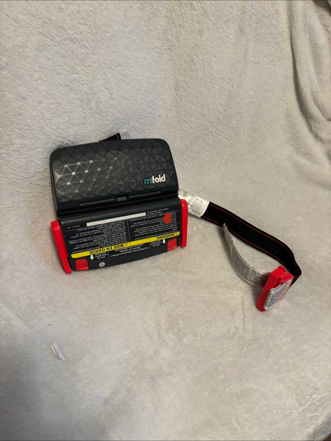 Selling a miFold Grab-and-Go booster seat! It's compact and perfect for travel or when you need an extra booster seat on hand. The design makes it easy to store and carry around. It's in great condition and ready for a new home