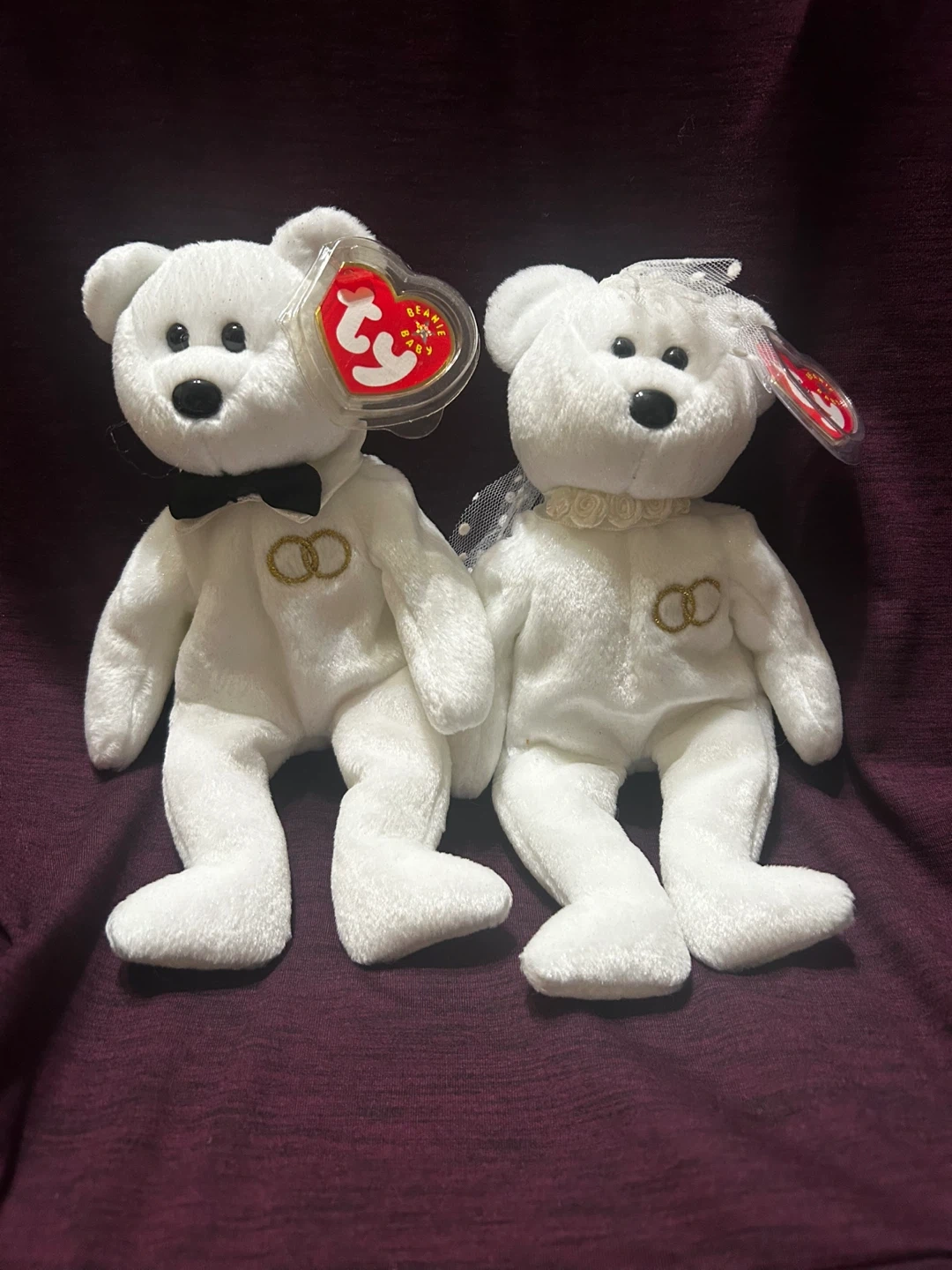 Selling a pair of adorable Ty Beanie Baby bears dressed for a wedding! You'll get both the bride and groom bears, complete with their original tags. They are in excellent condition and ready to celebrate!