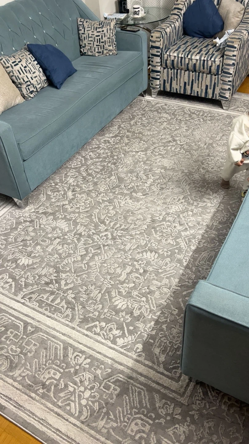 41Selling a lovely Mihran area rug in light grey! It's in great condition and would look fantastic in any living room or bedroom, large size. - Brand: Mihran - Color: Light Grey - Size: 160 cm x 230 cm. it used only 2month