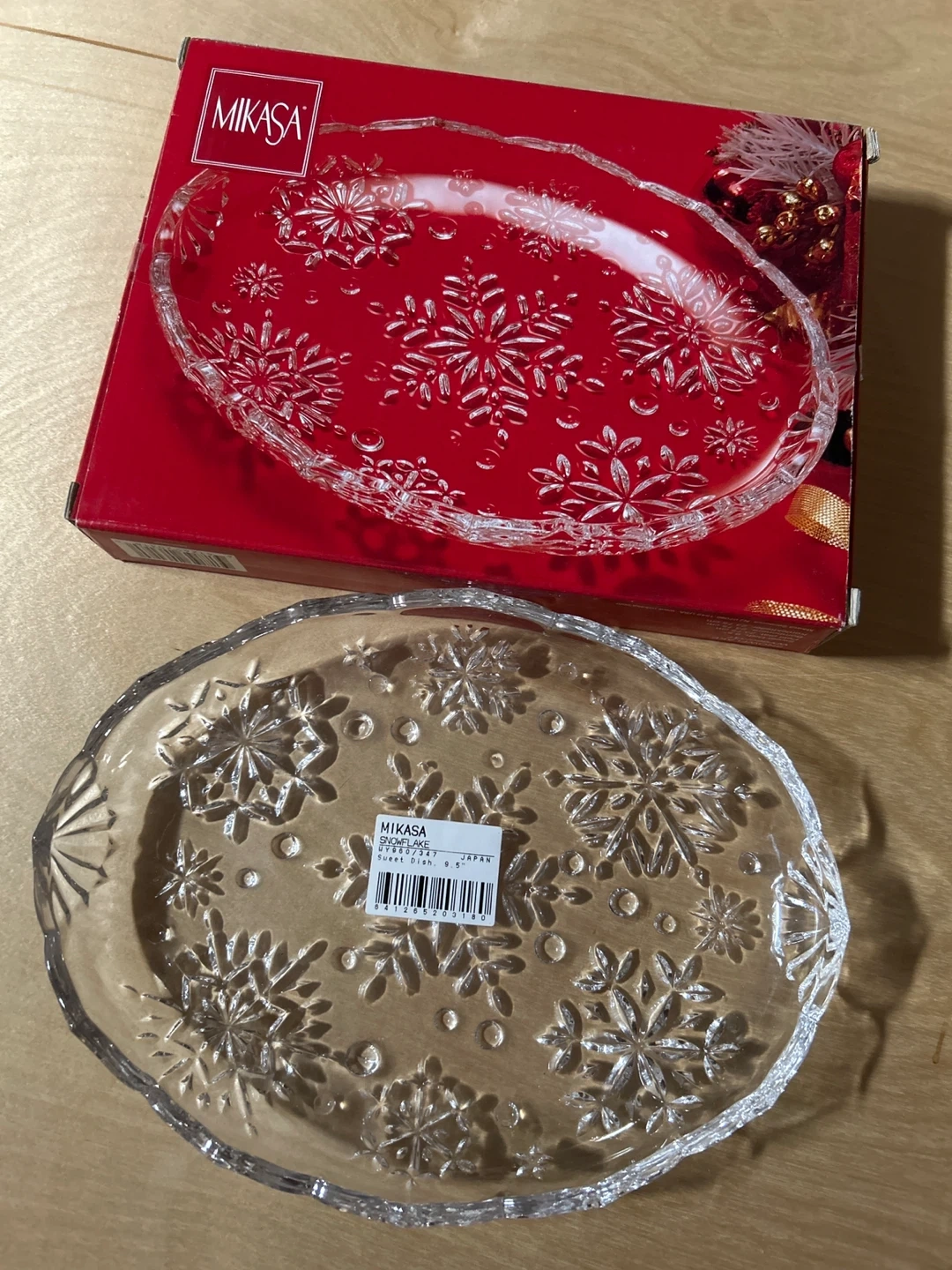 60Selling a Mikasa Snowflake sweet dish, size 9.5 inches! It's new and comes with the original box. The dish features a lovely snowflake pattern, perfect for adding a touch of winter charm to your table