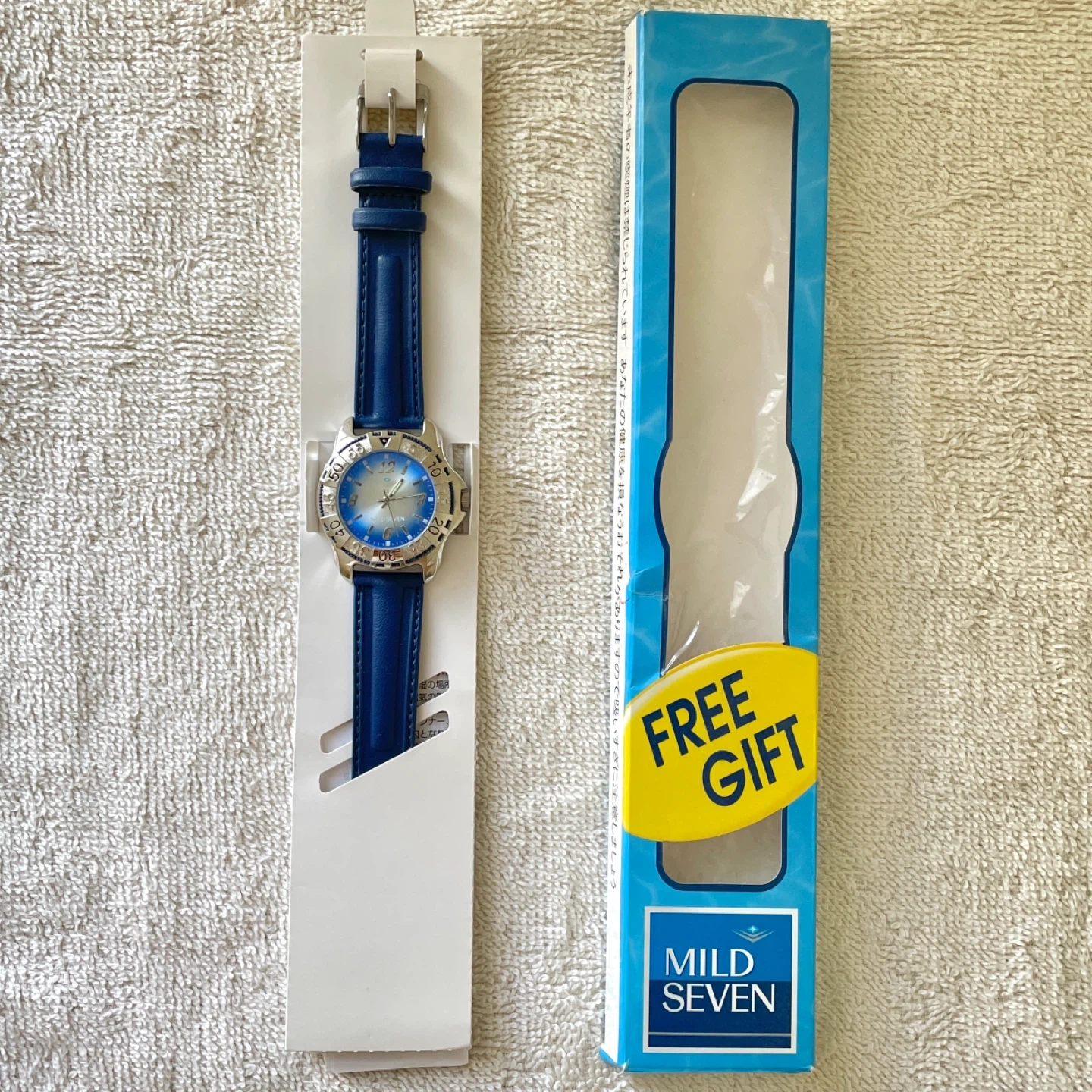 99📍Pick up at Don Mils & Steeles Mild Seven (now Mevius) Vintage Watch Condition: NEW with original box (the box shows some aging). No battery included. Comes with multilingual instructions (English/Japanese/Chinese/Korean). Product name: Quartz analog wristwatch Accuracy: ±30 seconds per month at normal temperature (5°C–35°C) Battery life: 1 year Battery type: SR626SW