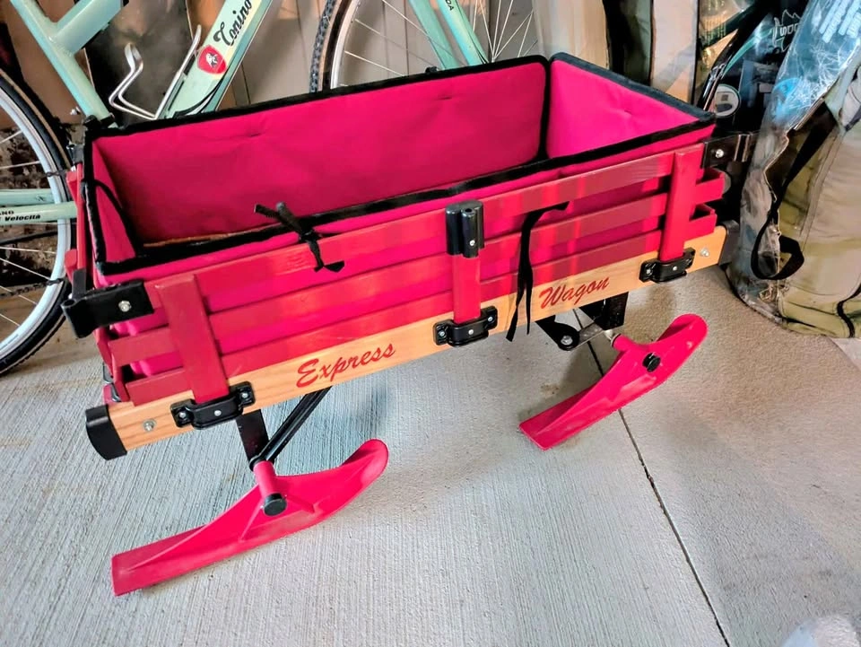 Only getting rid of this because we have two. Absolutely love this wagon. Have wheels and skis for it as well as the inner padding.