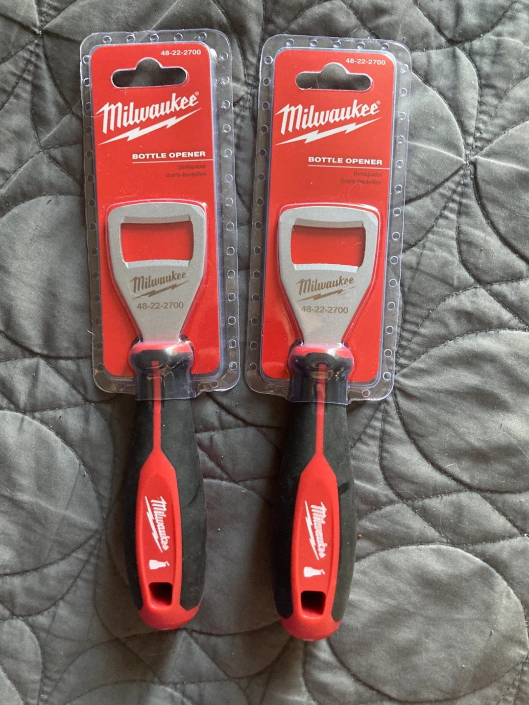 These are brand new Milwaukee bottle openers with screwdriver handle grips. These are $15 plus tax each in store but I’m only asking $5 each firm