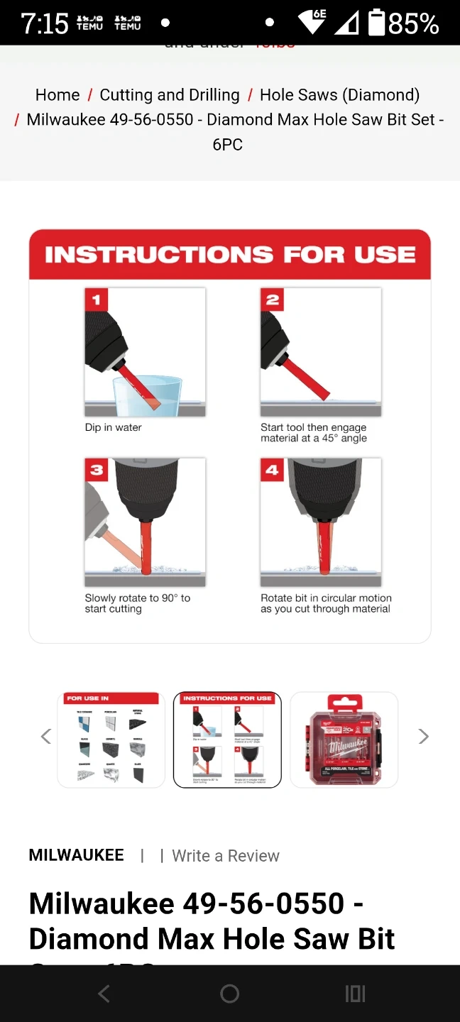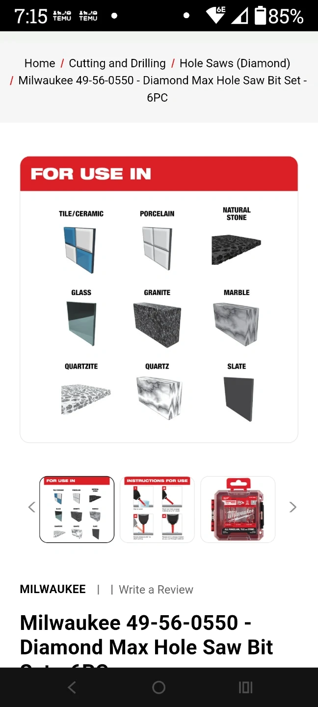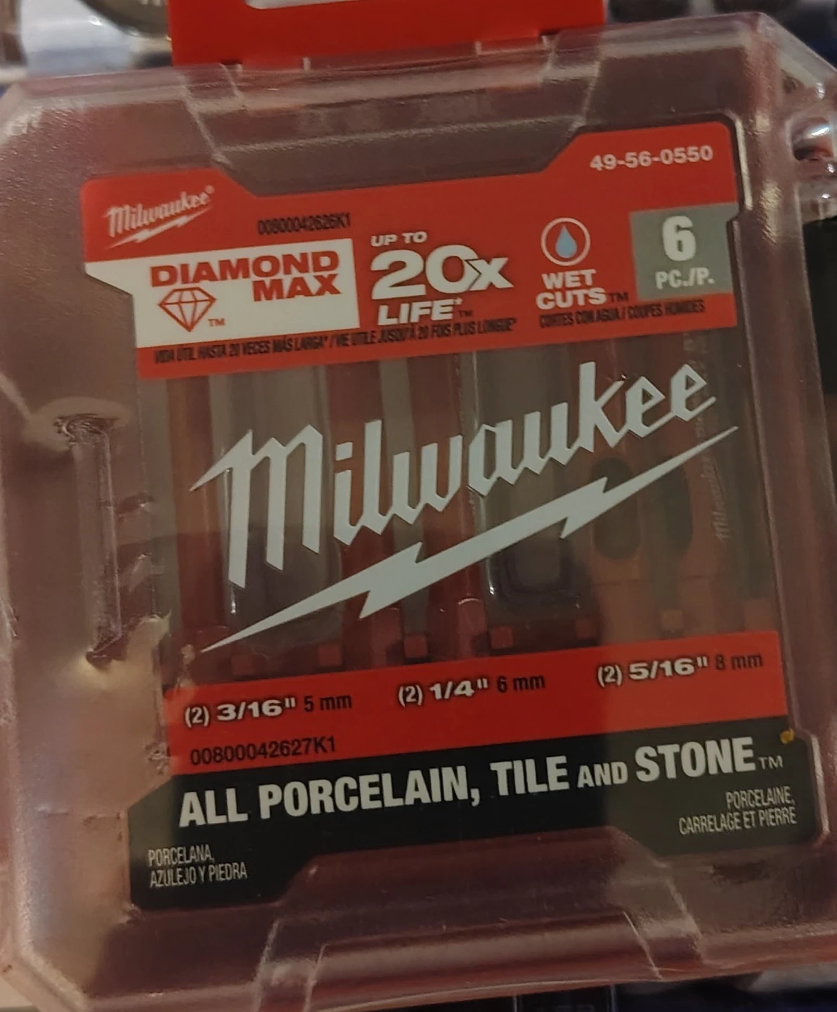 60Selling a Milwaukee Diamond Max Hole Saw Bit Set still in packaging This 6-piece set is designed for cutting porcelain, tile, and stone. It features diamond grit for enhanced performance and up to 20x life. Perfect for wet cuts!