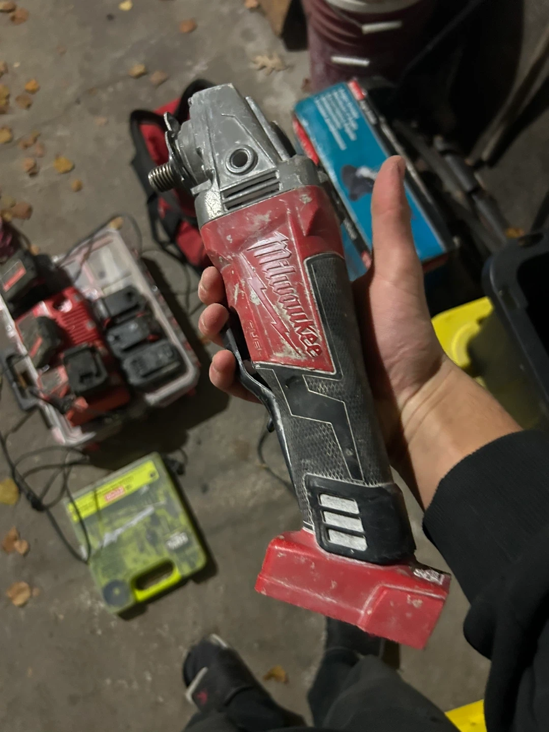 128Selling a used Milwaukee Fuel angle grinder. It shows signs of wear but is still functional