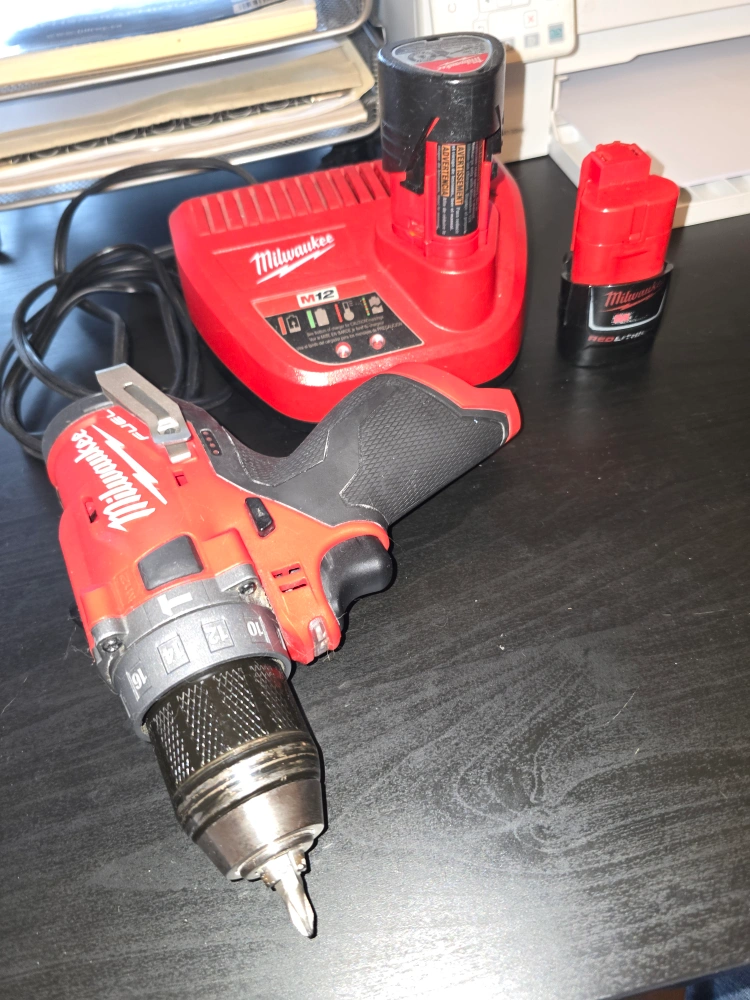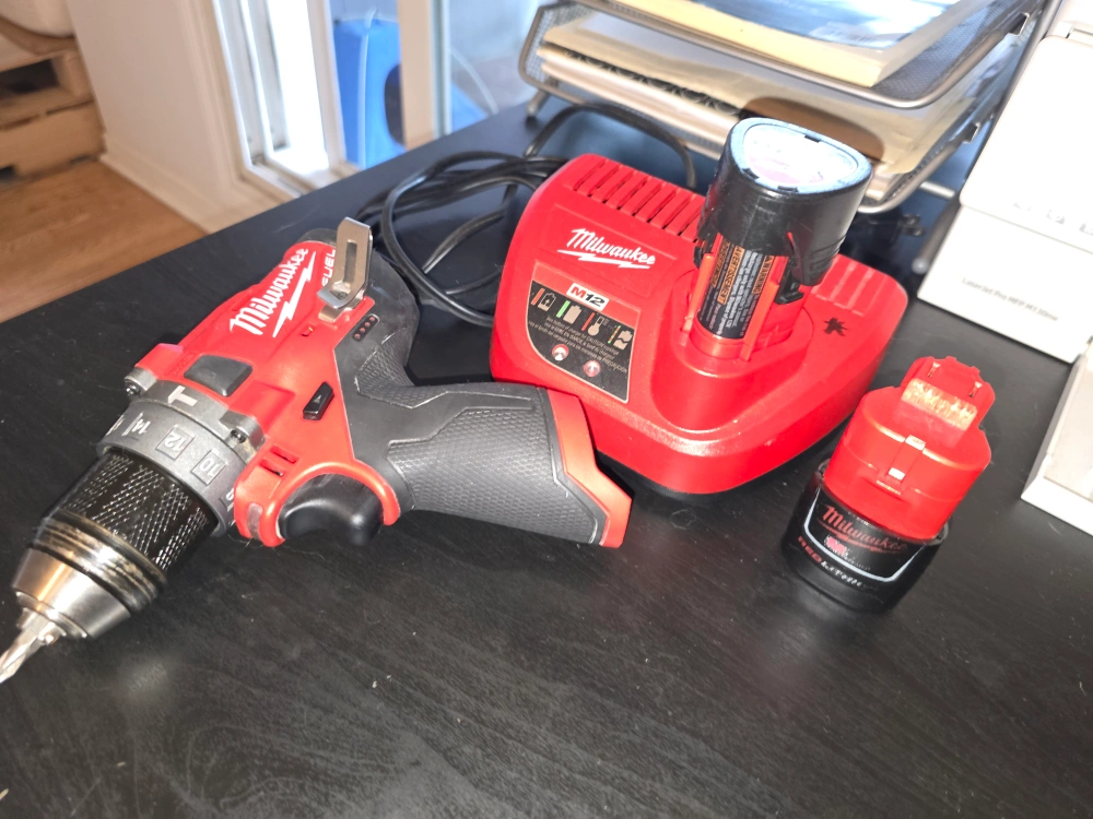 Selling a Milwaukee M12 Fuel drill driver kit! It's in great shape and ready for your next project. This kit includes the drill, charger, and two batteries so you're all set to go. Perfect for anyone needing a reliable and compact drill driver.